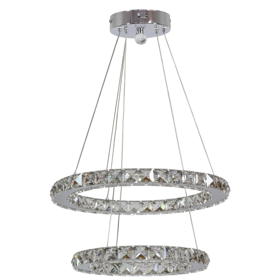 LORDS 31-32515 to nowoczesna lampa wisząca z dwoma źródłami światła. Wykonana została z wysokiej jakości stali w kolorze chromowym z transparentnymi, szklanymi kryształkami, które efektownie rozpraszają światło. Oprawa będzie idealnym wyborem do wnętrz urządzonych w nowoczesnym stylu. Doskonale będzie się prezentować w: salonie, sypialni, jadalni, pokoju młodzieżowym, gabinecie, biurze, lokalu, kuchni, przedpokoju. Dużą zaletą jest możliwość regulacji wysokości oraz kąta nachylenia. Wysokość maksymalna lampy to: 80 cm, szerokość 42 cm, głębokość 42 cm. Źródłem światła jest zintegrowany LED o mocy 24W i zimnej barwie światła 6200-6500K