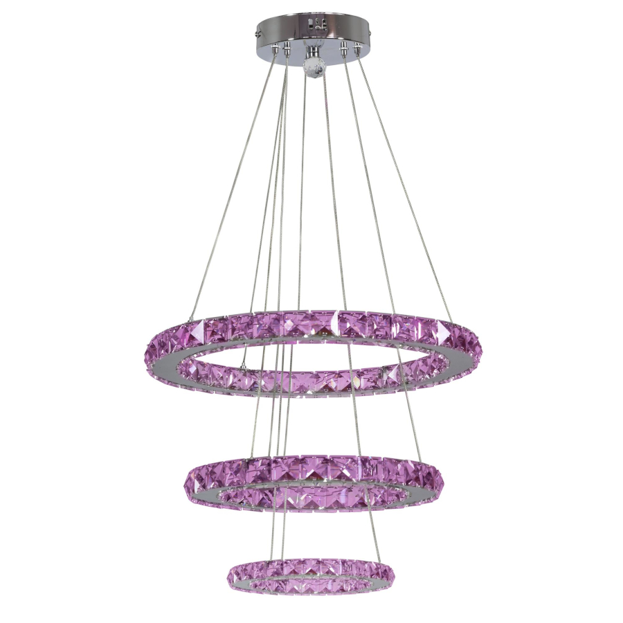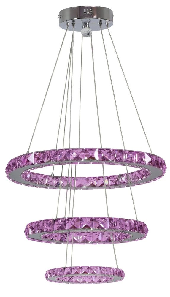 Lampa wisząca LORDS, 3 okręgi z kryształkami, 33-63090, chrom, 48W LED, RGB z pilotem