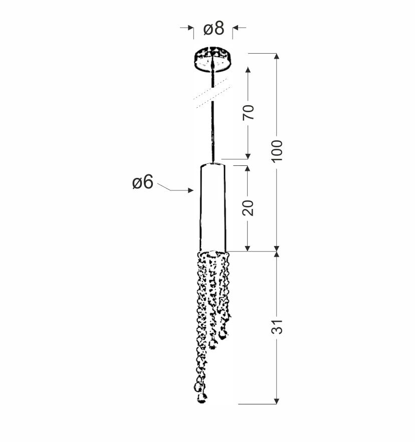zwis LED-owy w ekskluzywnym kryształowym wydaniu; niezwykle dekoracyjny, proste metalowe klosze zdobione transparentnymi kryształkami efektownie rozpraszającymi strumienie światła, zawieszone na metalowych linkach umożliwiających regulację wysokości;