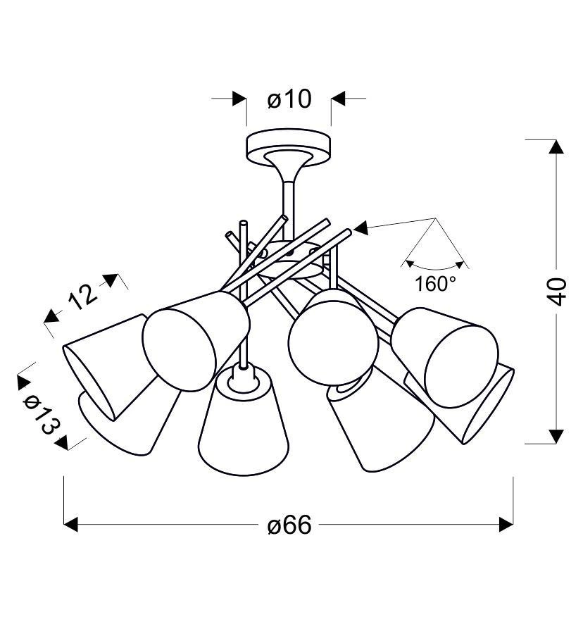 VOX 38-70647 to nowoczesna lampa sufitowa z ośmioma źródłami światła. Korpus lampy wykonano z wysokiej jakości stali w kolorze chromowym. Abażury są z szaro-srebrnej tkaniny wzmocnionej od środka PCV. Lampa posiada obrotowe ramiona, które pozwalają na regulacje położenia abażurów. Żyrandol będzie idealnym wyborem do nowoczesnych wnętrz. Doskonale będzie się prezentować w: salonie, sypialni, jadalni, pokoju młodzieżowym, gabinecie, biurze, lokalu. Wysokość lampy to: 40 cm, szerokość 66 cm, głębokość 66 cm. Źródłem światła jest żarówka typu E14 o mocy max 40W w ilości 8 szt.