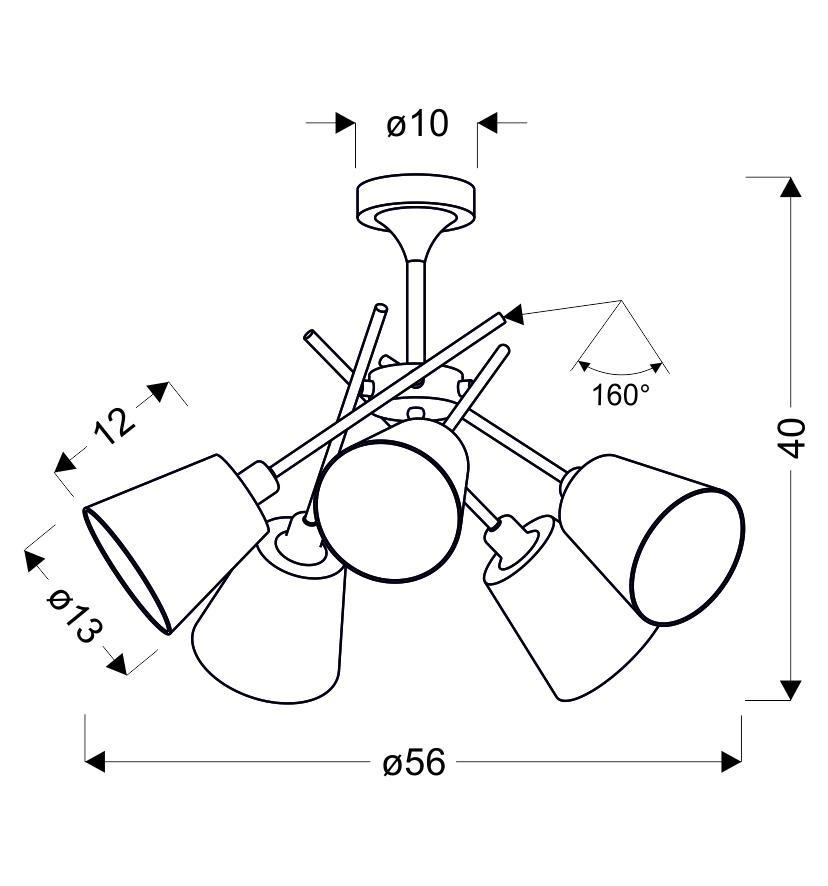 Lampa sufitowa VOX 35-70630 chromowa 5x40W E14 z regulacją położenia abażurów