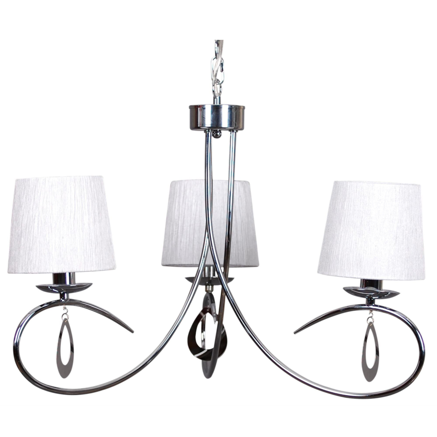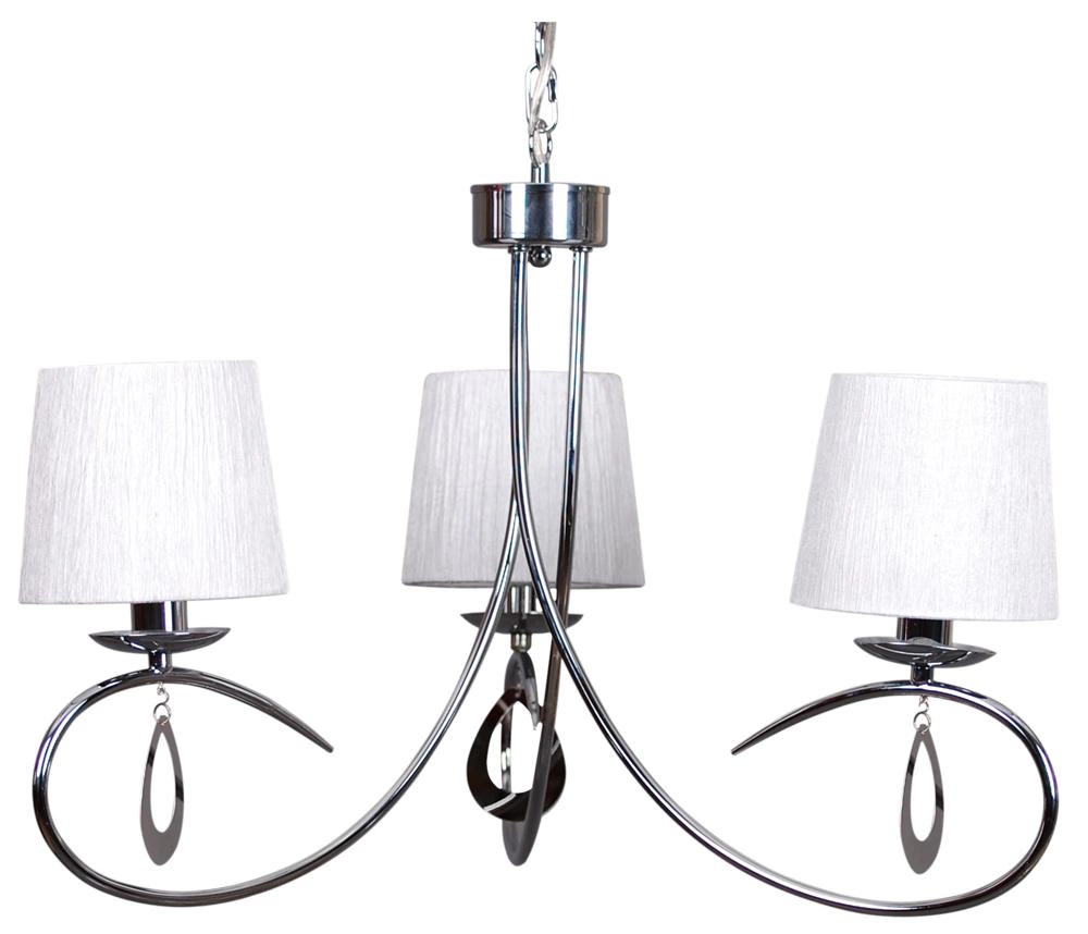 ARNIKA 33-21663 to nowoczesna lampa wisząca z trzema źródłami światła. Korpus lampy wykonano z wysokiej jakości stali w kolorze chromowym. Abażury są z białej kreszowanej tkaniny. Dodatkowo lampa ozdobiona jest metalowymi łezkami zwisającymi z każdego z ramion. Żyrandol będzie idealnym wyborem do wnętrz urządzonych w nowoczesnym stylu. Doskonale będzie się prezentować w: salonie, sypialni, jadalni, pokoju młodzieżowym, gabinecie, biurze, lokalu. Dużą zaletą jest możliwość regulacji wysokości. Wysokość maksymalna lampy to: 120 cm, szerokość 66 cm, głębokość 66 cm. Źródłem światła jest żarówka typu E14 o mocy max 40W w ilości 3 szt.