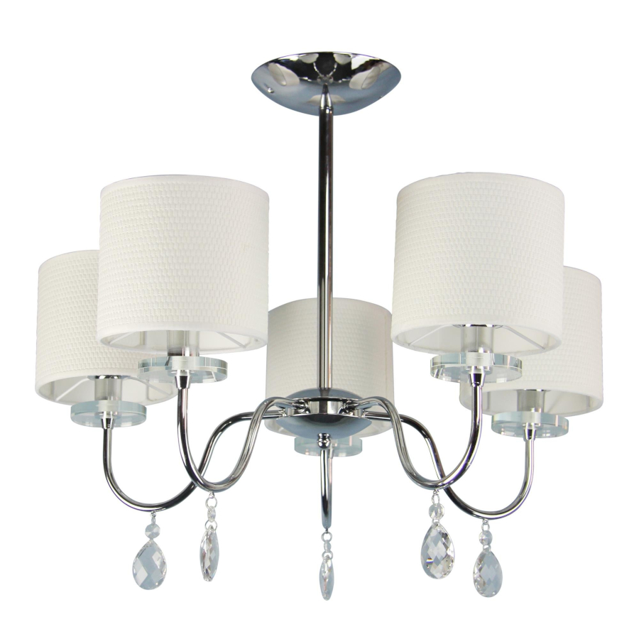 ESTERA 35-11671 to elegancka lampa sufitowa z pięcioma źródłami światła. Korpus lampy wykonano z wysokiej jakości stali w kolorze chromowym. Abażury są z jasnokremowej tkaniny wzmocnionej od wewnątrz PCV. Dodatkowo lampa ozdobiona jest zawieszonymi pod abażurami kryształkami. Żyrandol będzie idealnym wyborem do wnętrz urządzonych w klasycznym oraz nowoczesnym stylu. Doskonale będzie się prezentować w: salonie, sypialni, jadalni, pokoju młodzieżowym, gabinecie, biurze, lokalu. Wysokość lampy to: 56 cm, szerokość 58 cm, głębokość 58 cm. Źródłem światła jest żarówka typu E14 o mocy max 40W w ilości 5 szt.