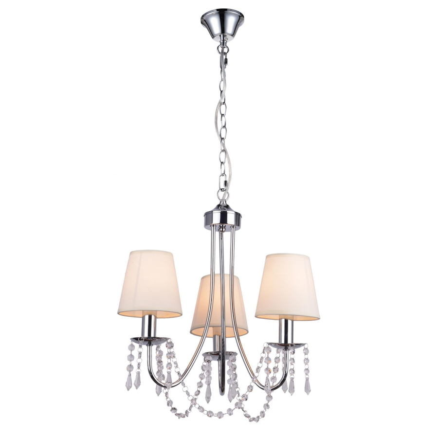 RUTI 33-58713 to elegancka lampa wisząca z trzema źródłami światła. Korpus lampy wykonano z wysokiej jakości stali w kolorze chromowym. Abażury są z beżowej tkaniny wzmocnionej od wewnątrz PCV. Dodatkowo lampa ozdobiona jest zawieszonymi pod abażurami kryształkami. Żyrandol będzie idealnym wyborem do wnętrz urządzonych w klasycznym oraz nowoczesnym stylu. Doskonale będzie się prezentować w: salonie, sypialni, jadalni, pokoju młodzieżowym, gabinecie, biurze, lokalu, przedpokoju. Dużą zaletą jest możliwość regulacji wysokości. Wysokość maksymalna lampy to: 150 cm, szerokość 50 cm, głębokość 50 cm. Źródłem światła jest żarówka typu E14 o mocy max 40W w ilości 3 szt.