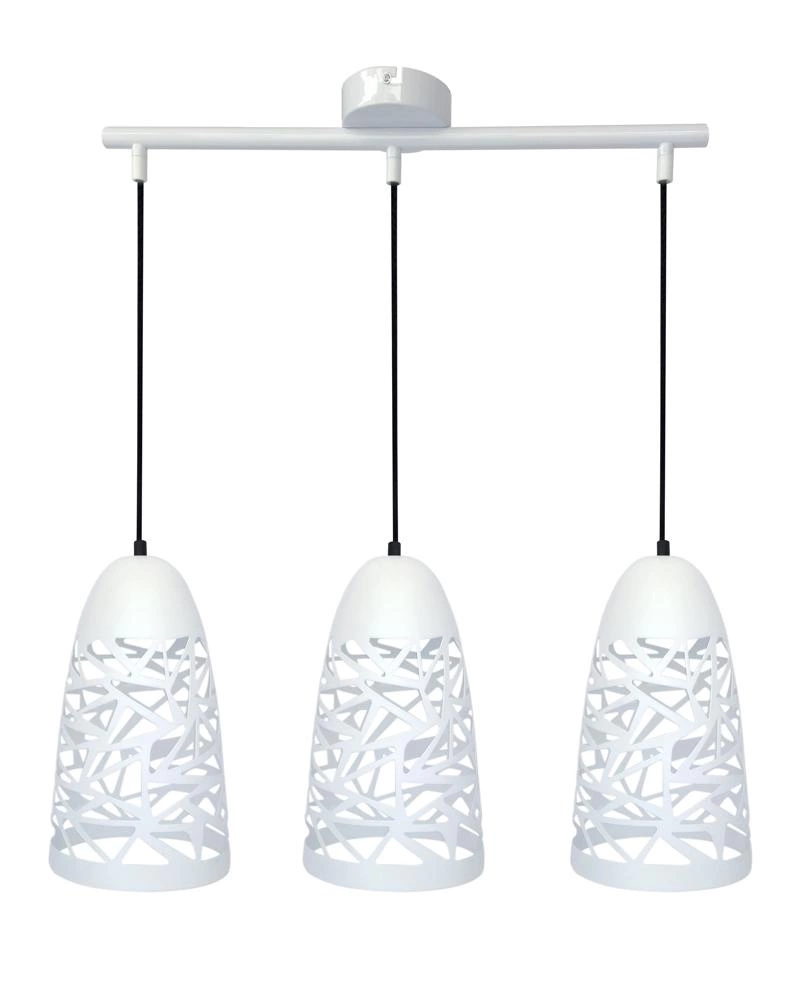 SABRIN 33-54876 to nowoczesna lampa wisząca z trzema źródłami światła. Wykonana została z wysokiej jakości metalu w kolorze białym z czarnymi detalami. Oprawa będzie idealnym wyborem do wnętrz urządzonych w nowoczesnym stylu. Doskonale będzie się prezentować w: salonie, jadalni, sypialni, pokoju młodzieżowym, gabinecie, lokalu, kuchni. Dużą zaletą jest możliwość regulacji wysokości. Wysokość maksymalna lampy to: 125 cm, szerokość 59 cm, głębokość 15 cm. Źródłem światła jest żarówka typu E27 o mocy max 60W w ilości 3 szt.