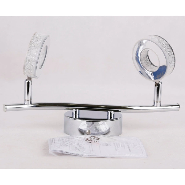 VINOLA 92-65605 to nowoczesna lampa sufitowa z dwoma źródłami światła. Korpus lampy wykonano z chromowanego metalu. Lampa posiada dwa akrylowe klosze w kształcie okręgów ozdobionych dekoracyjną granillą, która efektownie rozprasza światło. Klosze osadzone są na obrotowych przegubach pozwalających na zmianę ich położenia. Plafon będzie idealnym wyborem do nowoczesnych wnętrz. Doskonale będzie się prezentować w: salonie, jadalni, sypialni, pokoju młodzieżowym, gabinecie, biurze, lokalu, przedpokoju, korytarzu. Wysokość lampy to: 16 cm, szerokość 34 cm, głębokość 9 cm. Klosz ma średnicę 7,5 cm. W lampie zastosowano źródła światła LED o mocy 5W i ciepłej barwie światła 3000K w ilości 2 szt.