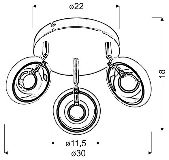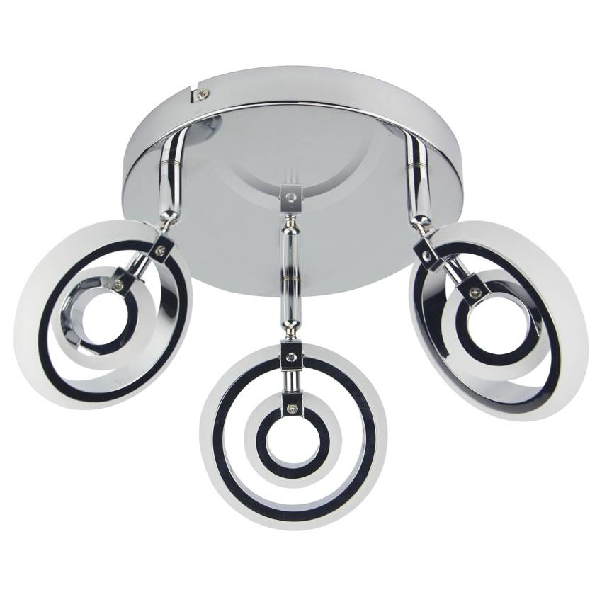 CELT 98-62024 to stylowa lampa sufitowa z trzema źródłami światła. Korpus lampy wykonano z wysokiej jakości stali w kolorze chromowym, klosze są z białego akrylu. Każdy z kloszy ma możliwość regulacji kierunku padania światła. Oprawa będzie idealnym wyborem do wnętrz urządzonych w nowoczesnym stylu. Doskonale będzie się prezentować w: salonie, jadalni, sypialni, pokoju młodzieżowym, gabinecie, lokalu, przedpokoju, korytarzu. Wysokość lampy to: 18 cm, średnica 30 cm. Lampa posiada trzy zintegrowane źródła światła LED o łącznej mocy 18W i ciepłej barwie 3000K