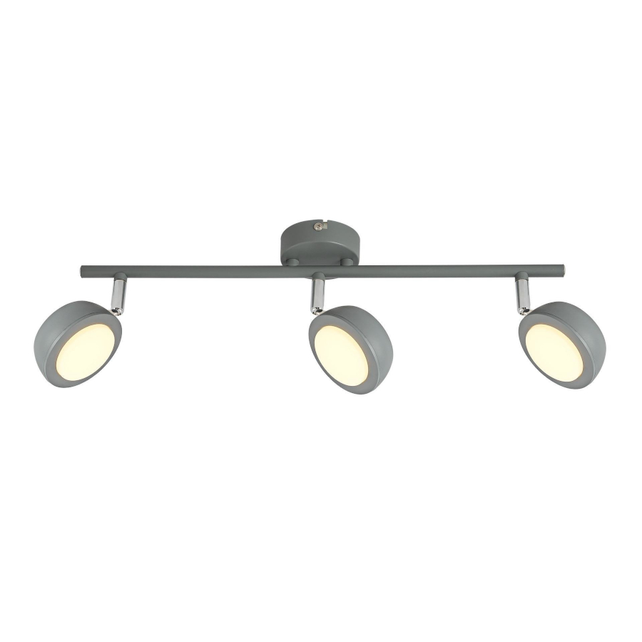 MILD 93-66541 to nowoczesna lampa sufitowa z trzema źródłami światła. Wykonana została z wysokiej jakości stali w kolorze szarym. Lampa posiada trzy klosze osadzone na ruchomych przegubach, które pozwalają na regulacje kąta padania światła. Źródła światła okryte są akrylową osłoną. Plafon będzie idealnym wyborem do nowoczesnych wnętrz. Doskonale będzie się prezentować w: salonie, jadalni, sypialni, pokoju młodzieżowym, gabinecie, biurze, lokalu, przedpokoju, korytarzu. Wysokość lampy to: 16 cm, szerokość 54 cm, głębokość 8 cm. W lampie zastosowano źródła światła LED o mocy 6W i ciepłej barwie 3000K w ilości 3 szt.