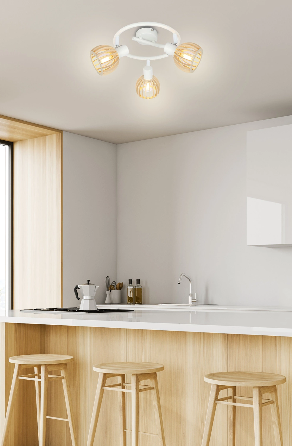 ATARRI 98-68125 to nowoczesna lampa sufitowa z trzema źródłami światła. Korpus lampy wykonano z wysokiej jakości metalu w kolorze białym. Lampa posiada trzy ażurowe klosze z MDFu w kształcie ściętych kul. Klosze osadzone na ruchomych przegubach, które dają możliwość regulacji kąta padania światła. Plafon będzie idealnym wyborem do wnętrz klasycznych, nowoczesnych oraz skandynawskich. Doskonale będzie się prezentować w: salonie, jadalni, sypialni, pokoju młodzieżowym, gabinecie, biurze, lokalu, przedpokoju, korytarzu. Wysokość lampy to: 18 cm, szerokość 44 cm, głębokość 44 cm. Źródłem światła jest żarówka typu E14 o mocy max 25W w ilości 3 szt.