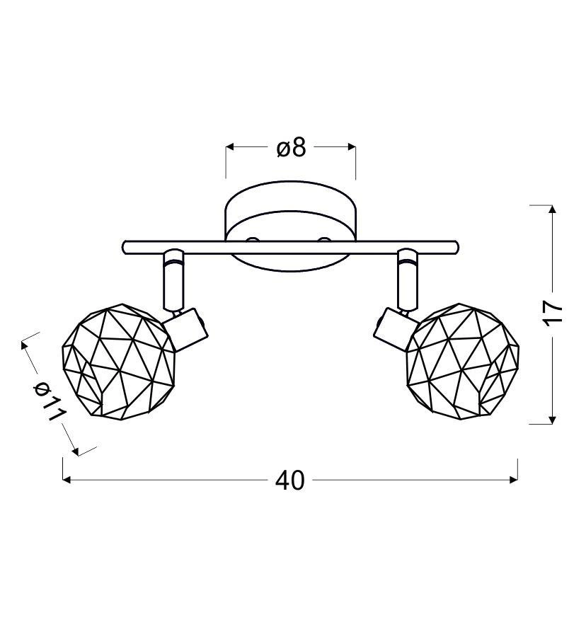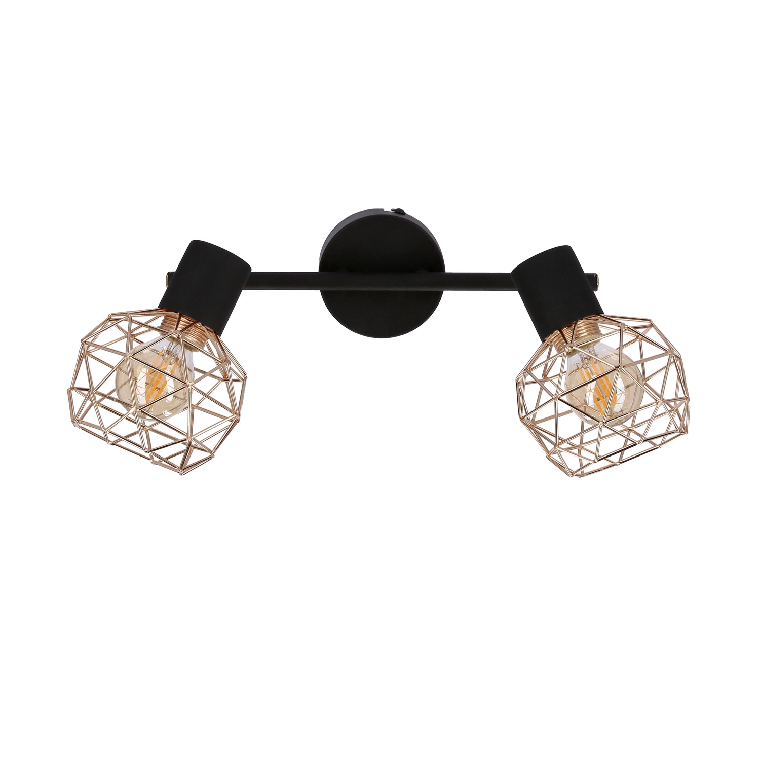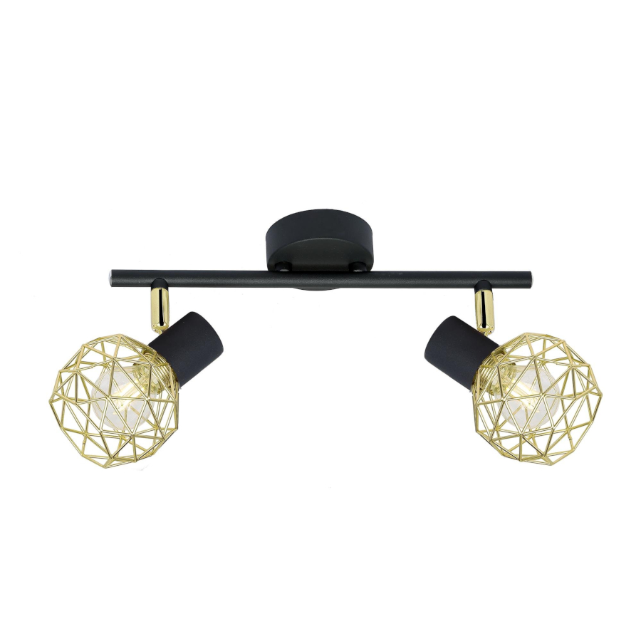 ACROBAT 92-66336 to nowoczesna lampa sufitowa z dwoma źródłami światła. Wykonana została z wysokiej jakości stali w kolorze czarno-złotym. Lampa posiada dwa ażurowe klosze z drutu koloru złotego osadzone na ruchomych przegubach, które dają możliwość regulacji kąta padania światła. Kształt kloszy sprawia że odsłonięte żarówki mogą być elementami ozdobnymi lampy dlatego warto wybrać ich dekoracyjny model. Oprawa będzie idealnym wyborem do nowoczesnych wnętrz. Doskonale będzie się prezentować w: salonie, jadalni, sypialni, pokoju młodzieżowym, gabinecie, biurze, lokalu, przedpokoju, korytarzu. Wysokość lampy to: 17 cm, szerokość 40 cm, głębokość 11 cm. Źródłem światła jest żarówka typu E14 o mocy max 40W w ilości 2 szt.