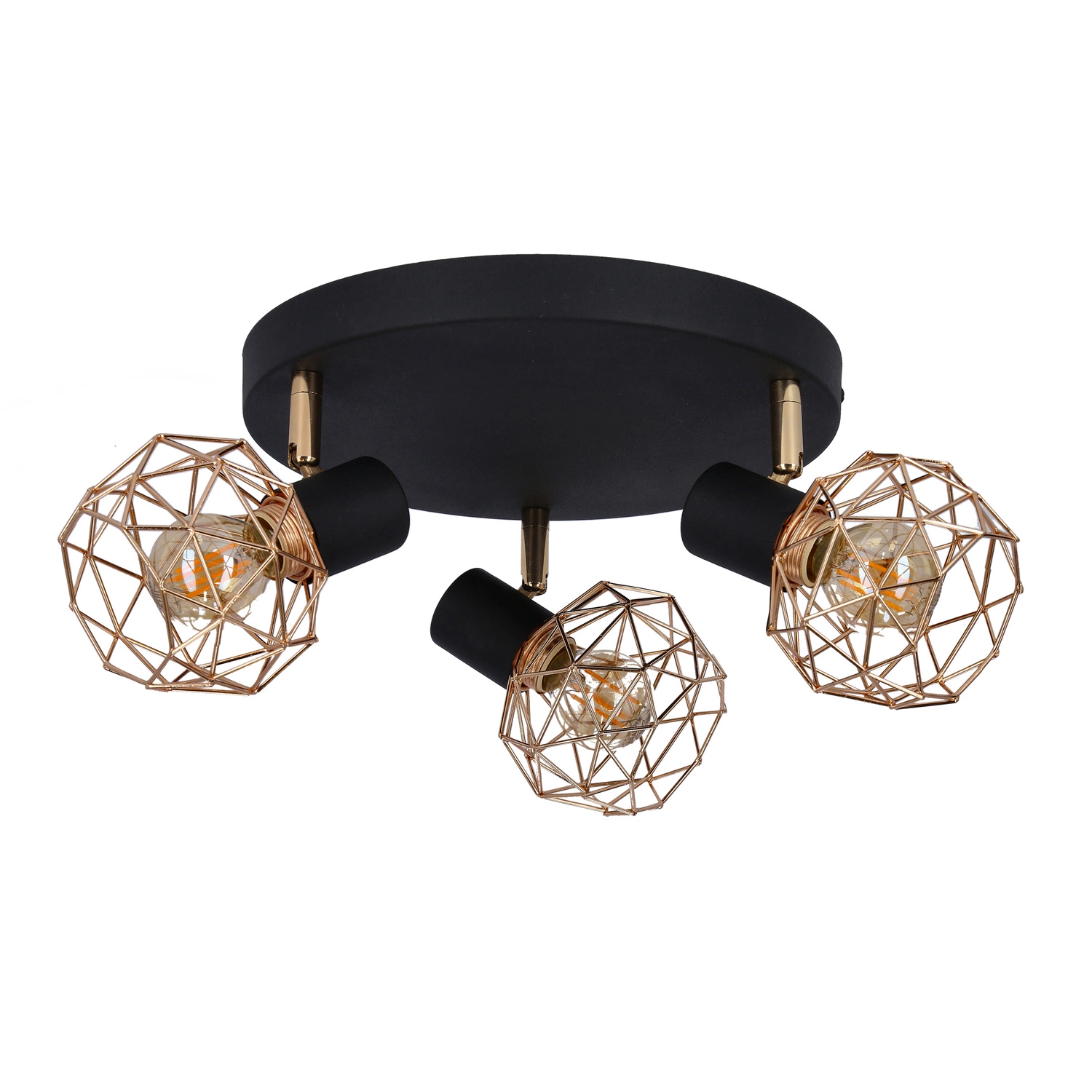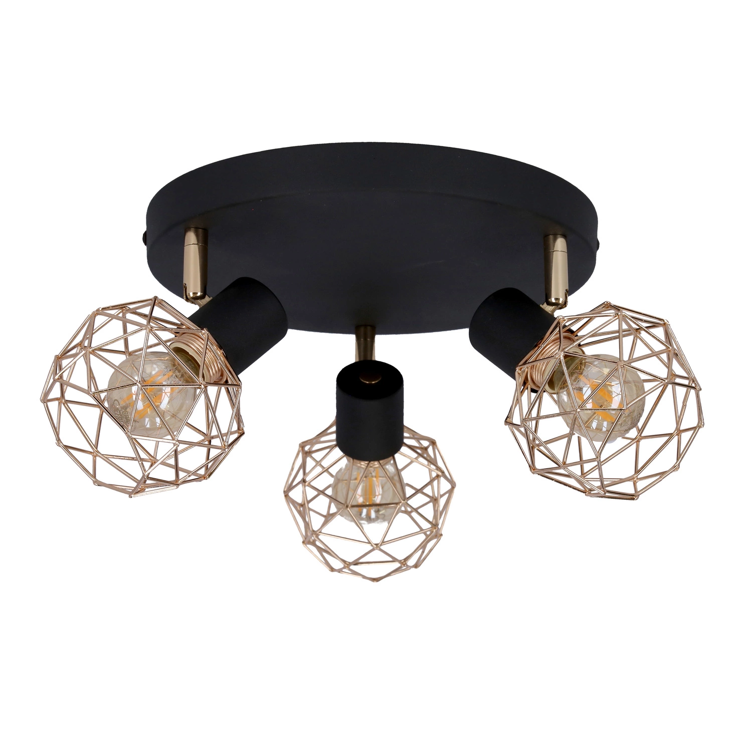 ACROBAT 98-66466 to nowoczesna lampa sufitowa z trzema źródłami światła. Wykonana została z wysokiej jakości stali w kolorze czarno-złotym. Lampa posiada trzy ażurowe klosze z drutu koloru złotego osadzone na ruchomych przegubach, które dają możliwość regulacji kąta padania światła. Kształt kloszy sprawia że odsłonięte żarówki mogą być elementami ozdobnymi lampy dlatego warto wybrać ich dekoracyjny model. Oprawa będzie idealnym wyborem do nowoczesnych wnętrz. Doskonale będzie się prezentować w: salonie, jadalni, sypialni, pokoju młodzieżowym, gabinecie, biurze, lokalu, przedpokoju, korytarzu. Wysokość lampy to: 15 cm, szerokość 42 cm, głębokość 42 cm. Źródłem światła jest żarówka typu E14 o mocy max 40W w ilości 3 szt.