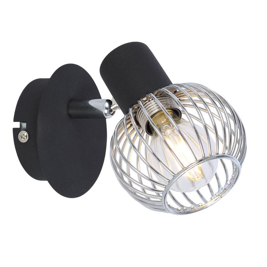 OSLO 91-61836 to nowoczesna lampa ścienna z jednym źródłem światła. Wykonana została z wysokiej jakości metalu w kolorze czarno-chromowym. Lampa posiada druciany klosz w kształcie kuli osadzony na ruchomym przegubie, które daje możliwość regulacji kąta padania światła. Kształt klosza sprawia, że odsłonięta żarówka może być elementem ozdobnym lampy dlatego warto wybrać jej dekoracyjny model. Kinkiet będzie idealnym wyborem do wnętrz nowoczesnych, industrialnych oraz loftowych. Doskonale będzie się prezentować w: salonie, jadalni, sypialni, pokoju młodzieżowym, gabinecie, biurze, lokalu, przedpokoju, korytarzu. Wysokość lampy to: 12 cm, szerokość 8 cm, głębokość 13 cm. Źródłem światła jest żarówka typu E14 o mocy max 40W w ilości 1 szt.