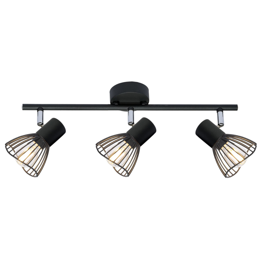 FLY 93-61911 to nowoczesna lampa sufitowa z trzema źródłami światła. Wykonana została z wysokiej jakości metalu w kolorze czarnym z chromowymi wstawkami. Lampa posiada trzy druciane klosze osadzone na ruchomych przegubach, które dają możliwość regulacji w pionie i poziomie. Kształt kloszy sprawia, że odsłonięte żarówki mogą być elementami ozdobnymi lampy dlatego warto wybrać ich dekoracyjny model. Oprawa będzie idealnym wyborem do wnętrz nowoczesnych, industrialnych oraz loftowych. Doskonale będzie się prezentować w: salonie, jadalni, sypialni, pokoju młodzieżowym, gabinecie, biurze, lokalu, przedpokoju, korytarzu. Wysokość lampy to: 15 cm, szerokość 56 cm, głębokość 8 cm. Źródłem światła jest żarówka typu E14 o mocy max 40W w ilości 3 szt.