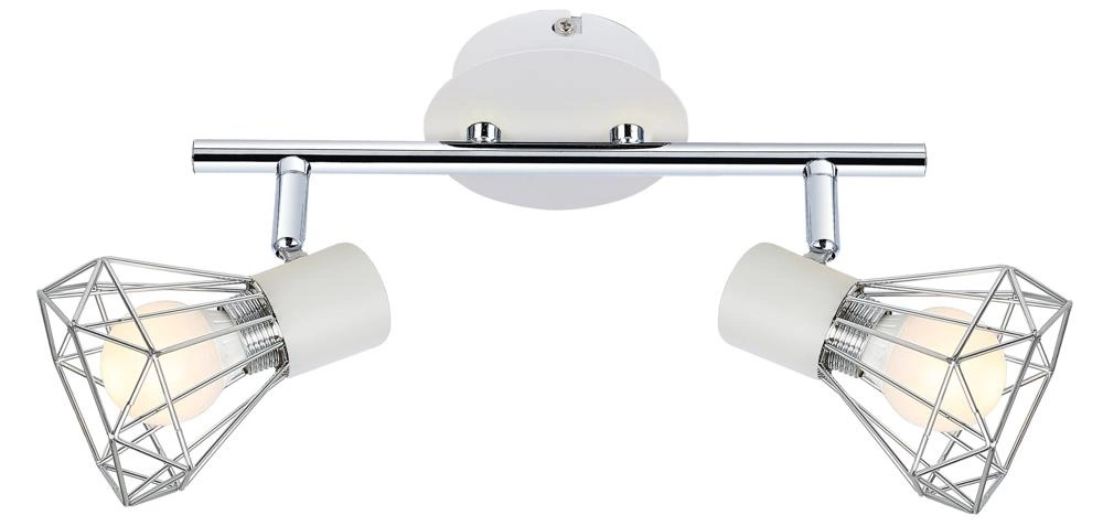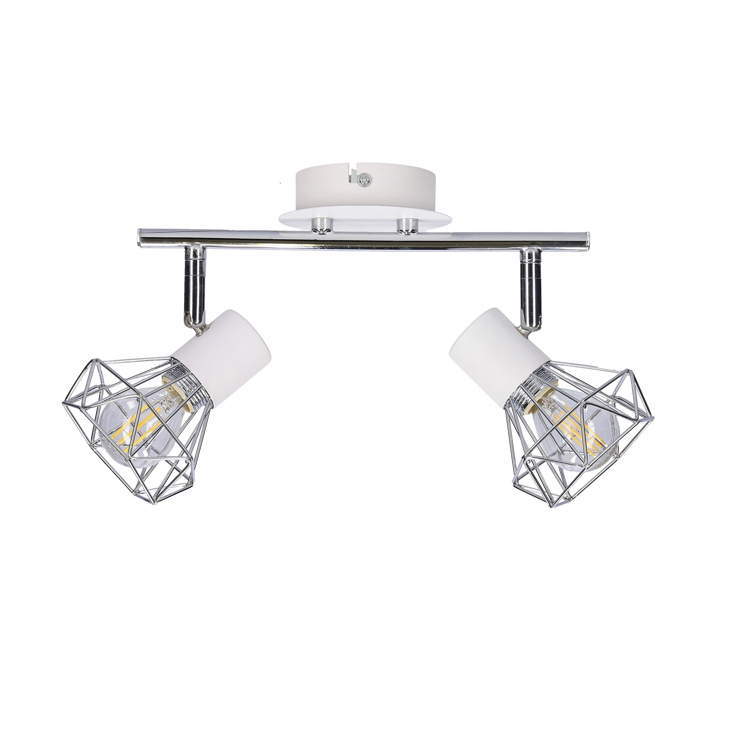 VERVE 92-61348 to nowoczesna lampa sufitowa z dwoma źródłami światła. Wykonana została z wysokiej jakości stali w kolorze biało-chromowym. Lampa posiada dwa druciane klosze osadzone na ruchomych przegubach, które dają możliwość regulacji w pionie i poziomie. Kształt kloszy sprawia, że odsłonięte żarówki mogą być elementami ozdobnymi lampy dlatego warto wybrać ich dekoracyjny model. Oprawa będzie idealnym wyborem do wnętrz nowoczesnych, industrialnych, skandynawskich oraz loftowych. Doskonale będzie się prezentować w: salonie, jadalni, sypialni, pokoju młodzieżowym, gabinecie, biurze, lokalu, przedpokoju, korytarzu. Wysokość lampy to: 18 cm, szerokość 34 cm, głębokość 9 cm. Źródłem światła jest żarówka typu E14 o mocy max 40W w ilości 2 szt.