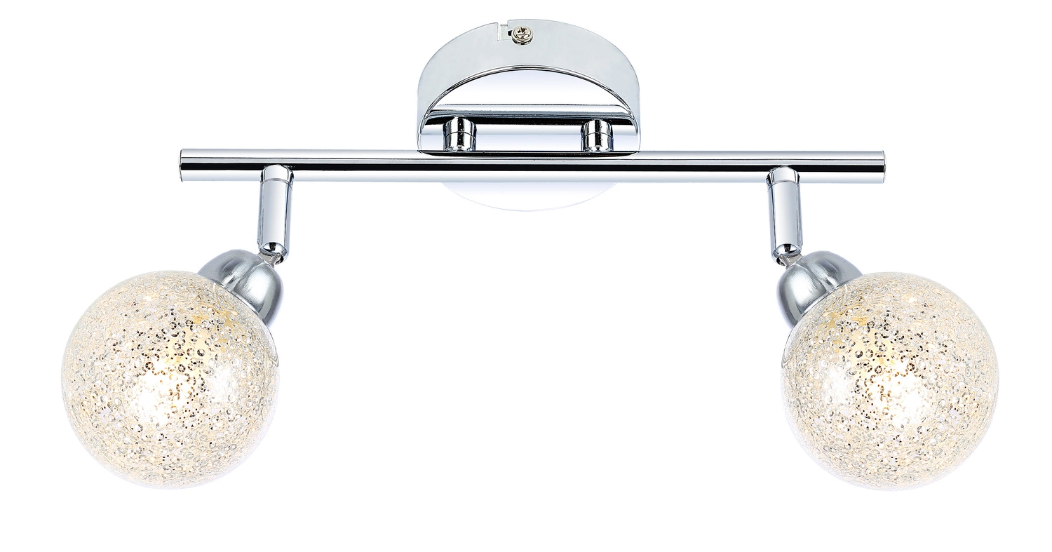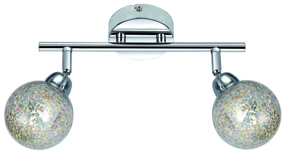 KALEIDOSCOPE 92-61560 to nowoczesna lampa sufitowa z dwoma źródłami światła, która może służyć także jako kinkiet. Korpus lampy wykonano z wysokiej jakości stali w kolorze chromowym. Lampa posiada dwa szklane klosze w kształcie zamkniętej kulki z niezliczoną ilością dekoracyjnych gwiazdek wewnątrz. Klosze mają możliwość regulacji kąta nachylenia w pionie i poziomie. Oprawa będzie idealnym wyborem do nowoczesnych wnętrz. Doskonale będzie się prezentować w: salonie, jadalni, sypialni, pokoju młodzieżowym, gabinecie, biurze, lokalu, przedpokoju, korytarzu. Wysokość lampy to: 16 cm, szerokość 30 cm, głębokość 8 cm. Źródłem światła jest żarówka G9 typu LED o mocy 4W, ciepłej barwie światła 3000K i jasności 300lm w ilości 2 szt. (źródła światła w zestawie)