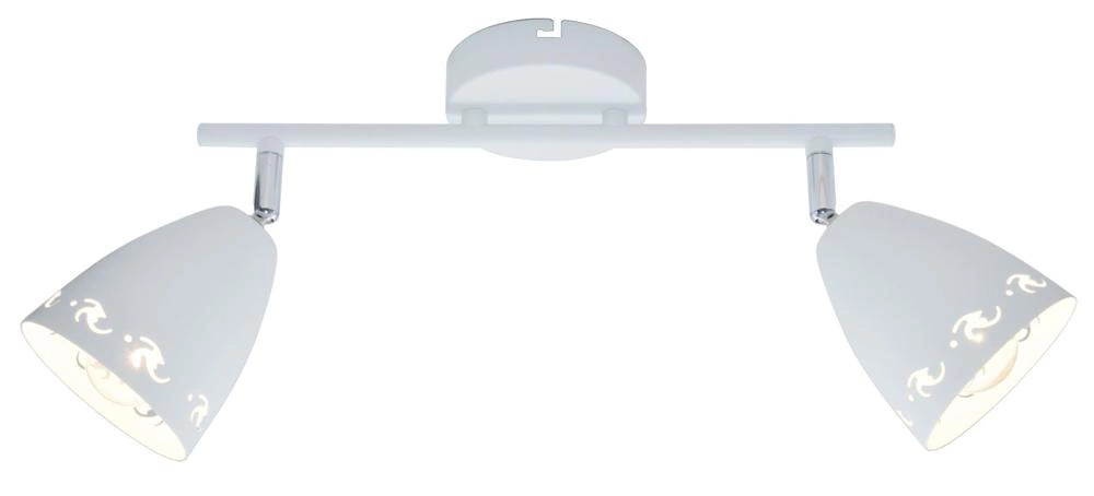 COTY 92-67128 to nowoczesna lampa sufitowa z dwoma źródłami światła. Wykonana została z wysokiej jakości metalu w kolorze matowym białym. Lampa posiada dwa klosze ozdobione dekoracyjnymi wycięciami na obrzeżach. Klosze osadzone są na ruchomych przegubach, które dają możliwość regulacji w pionie i poziomie. Oprawa będzie idealnym wyborem do nowoczesnych wnętrz. Doskonale będzie się prezentować w: salonie, jadalni, sypialni, pokoju młodzieżowym, gabinecie, biurze, lokalu, przedpokoju, korytarzu. Wysokość lampy to: 20 cm, szerokość 50 cm, głębokość 10 cm. Źródłem światła jest żarówka typu E14 o mocy max 40W w ilości 2 szt.