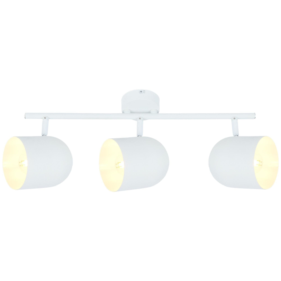 AZURO 93-63267 to nowoczesna lampa sufitowa z trzema źródłami światła. Wykonana została z wysokiej jakości metalu w kolorze białym. Lampa posiada trzy klosze w kształcie walca z zaokrągleniem w górnej części. Klosze osadzone są na ruchomych przegubach, które dają możliwość regulacji w pionie i poziomie. Oprawa będzie idealnym wyborem do nowoczesnych wnętrz. Doskonale będzie się prezentować w: salonie, jadalni, sypialni, pokoju młodzieżowym, gabinecie, biurze, lokalu, przedpokoju, korytarzu. Wysokość lampy to: 18 cm, szerokość 55 cm, głębokość 10 cm. Źródłem światła jest żarówka typu E27 o mocy max 40W w ilości 3 szt.
