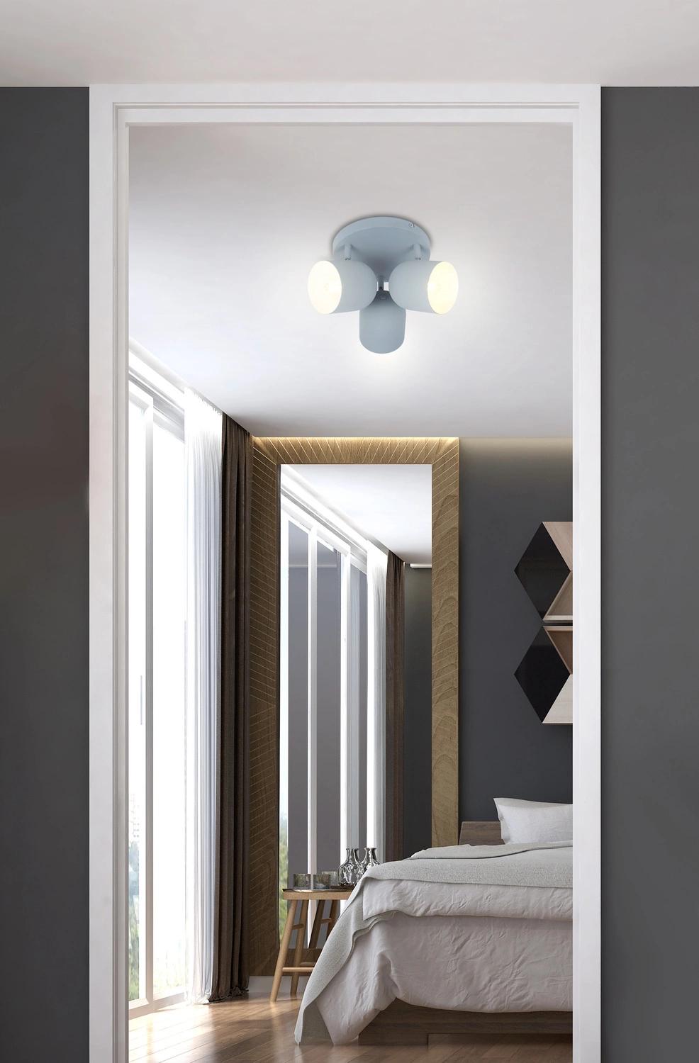 AZURO 98-63236 to nowoczesna lampa sufitowa z trzema źródłami światła. Wykonana została z wysokiej jakości metalu w kolorze szarym matowym. Lampa posiada trzy klosze w kształcie walca z zaokrągleniem w górnej części. Klosze osadzone są na ruchomych przegubach, które dają możliwość regulacji w pionie i poziomie. Oprawa będzie idealnym wyborem do nowoczesnych wnętrz. Doskonale będzie się prezentować w: salonie, jadalni, sypialni, pokoju młodzieżowym, gabinecie, biurze, lokalu, przedpokoju, korytarzu. Wysokość lampy to: 18 cm, szerokość 32 cm, głębokość 32 cm. Źródłem światła jest żarówka typu E27 o mocy max 40W w ilości 3 szt.