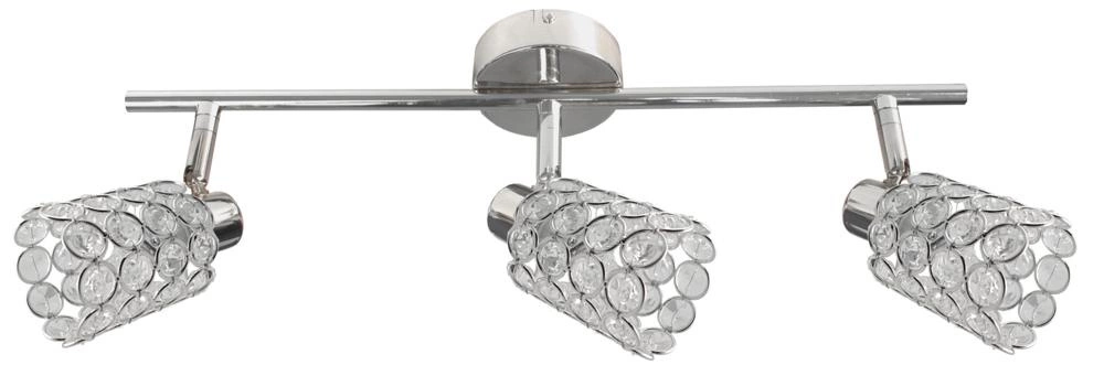 YORK 93-00101 to nowoczesna lampa sufitowa z trzema źródłami światła. Korpus lampy wykonano z chromowanego metalu. Lampa posiada trzy niezwykle eleganckie walcowe metalowe klosze zdobione transparentnymi kryształkami. Klosze są osadzone na ruchomych przegubach, które dają możliwość regulacji w pionie i poziomie. Oprawa będzie idealnym wyborem do wnętrz urządzonych w stylu nowoczesnym oraz glamour. Doskonale będzie się prezentować w: salonie, jadalni, sypialni, pokoju młodzieżowym, gabinecie, biurze, lokalu, przedpokoju, korytarzu. Wysokość lampy to: 17 cm, szerokość 55 cm, głębokość 8 cm. Źródłem światła jest żarówka typu G9 o mocy max 40W w ilości 3 szt.
