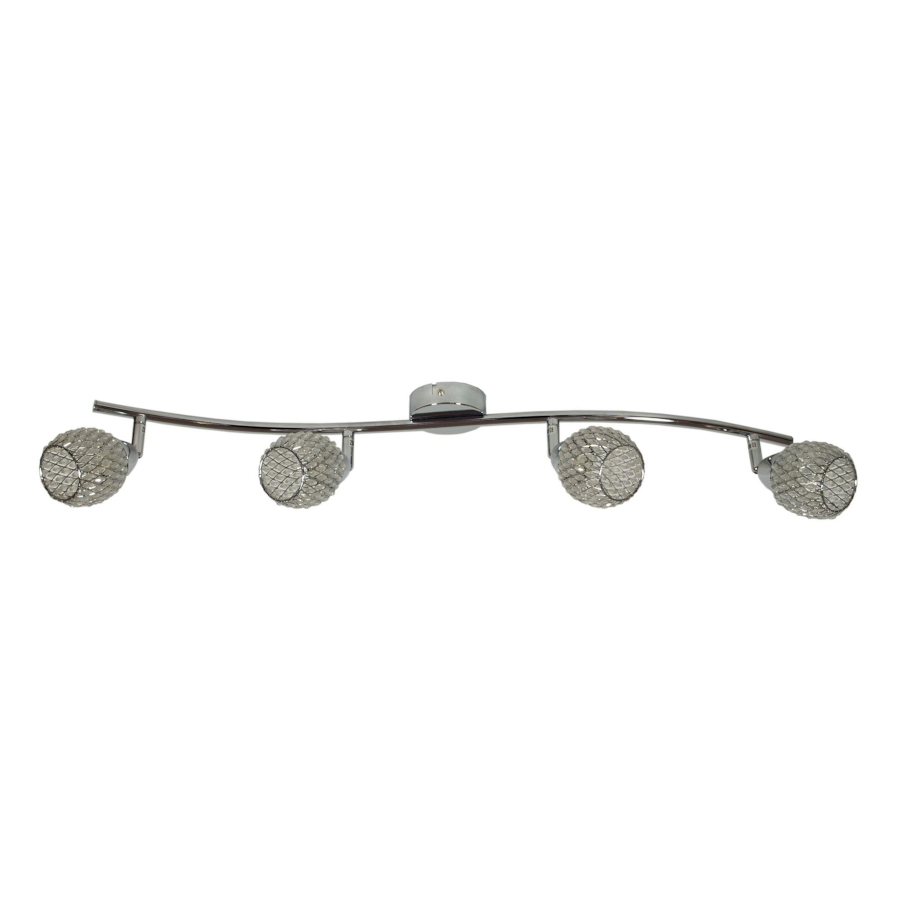 CLEAR 94-06882 to nowoczesna lampa sufitowa z czterema źródłami światła. Korpus lampy wykonano z chromowanego metalu. Lampa posiada cztery niezwykle eleganckie druciane klosze zdobione transparentnymi kryształkami. Klosze są osadzone na ruchomych przegubach, które dają możliwość regulacji w pionie i poziomie. Oprawa będzie idealnym wyborem do wnętrz urządzonych w nowoczesnym stylu. Doskonale będzie się prezentować w: salonie, jadalni, sypialni, pokoju młodzieżowym, gabinecie, biurze, lokalu, przedpokoju, korytarzu. Wysokość lampy to: 19 cm, szerokość 84 cm, głębokość 8 cm. Źródłem światła jest żarówka typu G9 o mocy max 40W w ilości 4 szt.