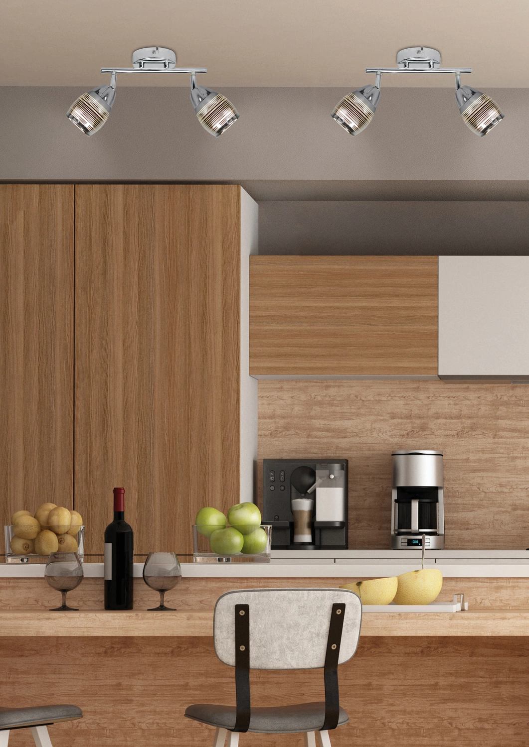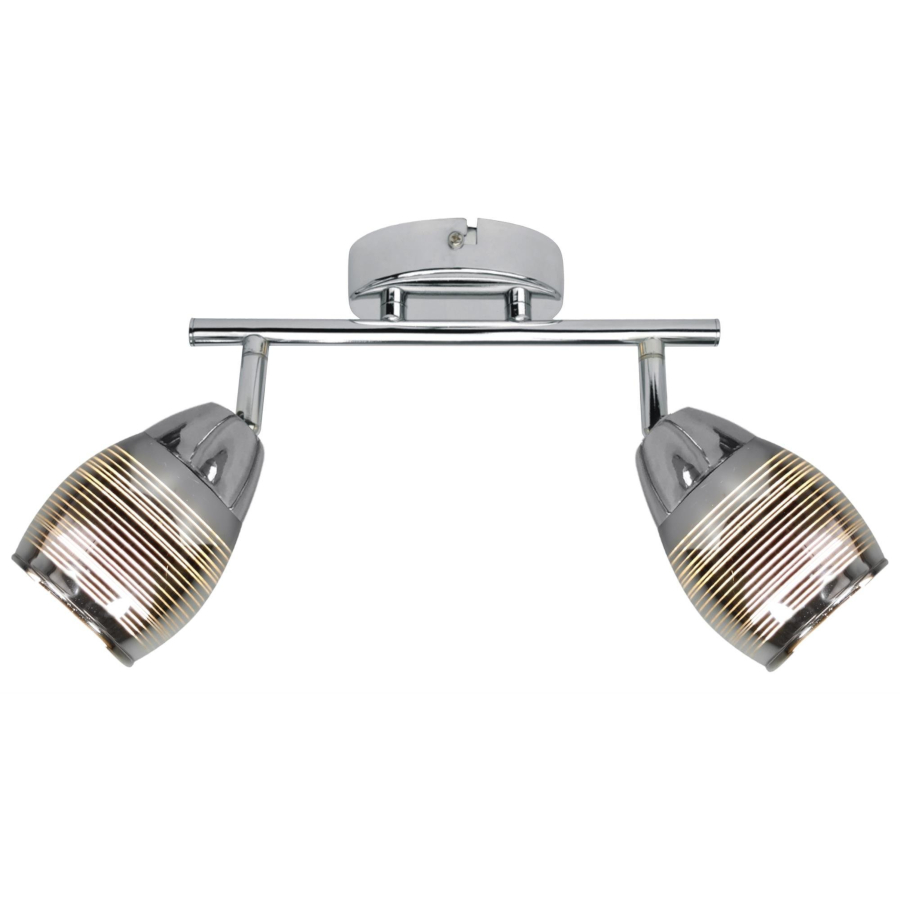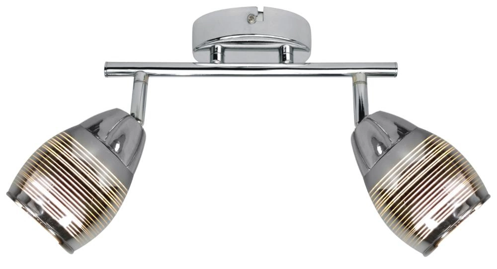 MILTON 92-41265 to nowoczesna lampa sufitowa z dwoma źródłami światła, która może służyć także jako kinkiet. Wykonana została z wysokiej jakości stali w kolorze chromowym. Lampa posiada dwa szklane lustrzane klosze dekorowane cienkimi poziomymi liniami. Klosze osadzone są na ruchomych przegubach, które dają możliwość regulacji ich położenia. Oprawa będzie idealnym wyborem do klasycznych oraz nowoczesnych wnętrz. Doskonale będzie się prezentować w: salonie, jadalni, sypialni, pokoju młodzieżowym, gabinecie, biurze, lokalu, przedpokoju, korytarzu. Wysokość lampy to: 20 cm, szerokość 39 cm, głębokość 8,5 cm. Źródłem światła jest żarówka E14 typu LED o mocy max 10W w ilości 2 szt.