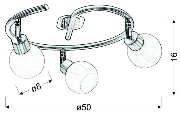 ALABASTER 98-07032 to nowoczesna lampa sufitowa z trzema źródłami światła. Korpus lampy wykonano z metalu w kolorze satyny z nakładką z błyszczącego chromu. Lampa posiada trzy szklane białe klosze osadzone na ruchomych przegubach, które dają możliwość regulacji kąta padania światła. Oprawa będzie idealnym wyborem do wnętrz urządzonych w klasycznym oraz nowoczesnym stylu. Doskonale będzie się prezentować w: salonie, jadalni, sypialni, pokoju młodzieżowym, gabinecie, biurze, lokalu, przedpokoju, korytarzu. Wysokość lampy to: 16 cm, szerokość 50 cm, głębokość 50 cm. Źródłem światła jest żarówka typu G9 o mocy max 40W w ilości 3 szt. (źródła światła w zestawie)