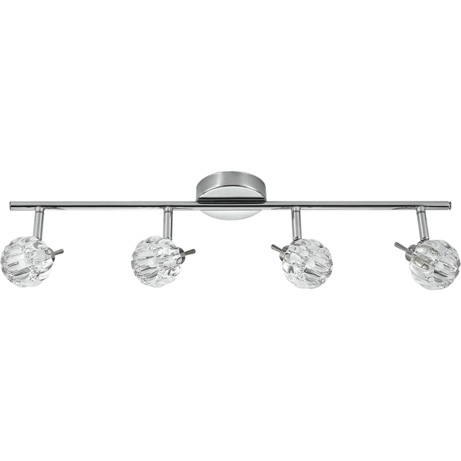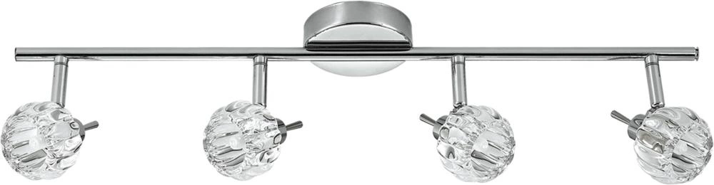 BOMBOLA 94-70319 to nowoczesna lampa sufitowa z czterema źródłami światła. Wykonana została z wysokiej jakości metalu w kolorze chromowym. Lampa posiada cztery kuliste, kryształowe klosze osadzone na ruchomych przegubach, które dają możliwość regulacji ich położenia. Oprawa będzie idealnym wyborem do klasycznych oraz nowoczesnych wnętrz. Doskonale będzie się prezentować w: salonie, jadalni, sypialni, pokoju młodzieżowym, gabinecie, biurze, lokalu, przedpokoju, korytarzu. Wysokość lampy to: 13,5 cm, szerokość 67 cm, głębokość 8 cm. Źródłem światła jest żarówka typu G9 o mocy max 40W w ilości 4 szt.