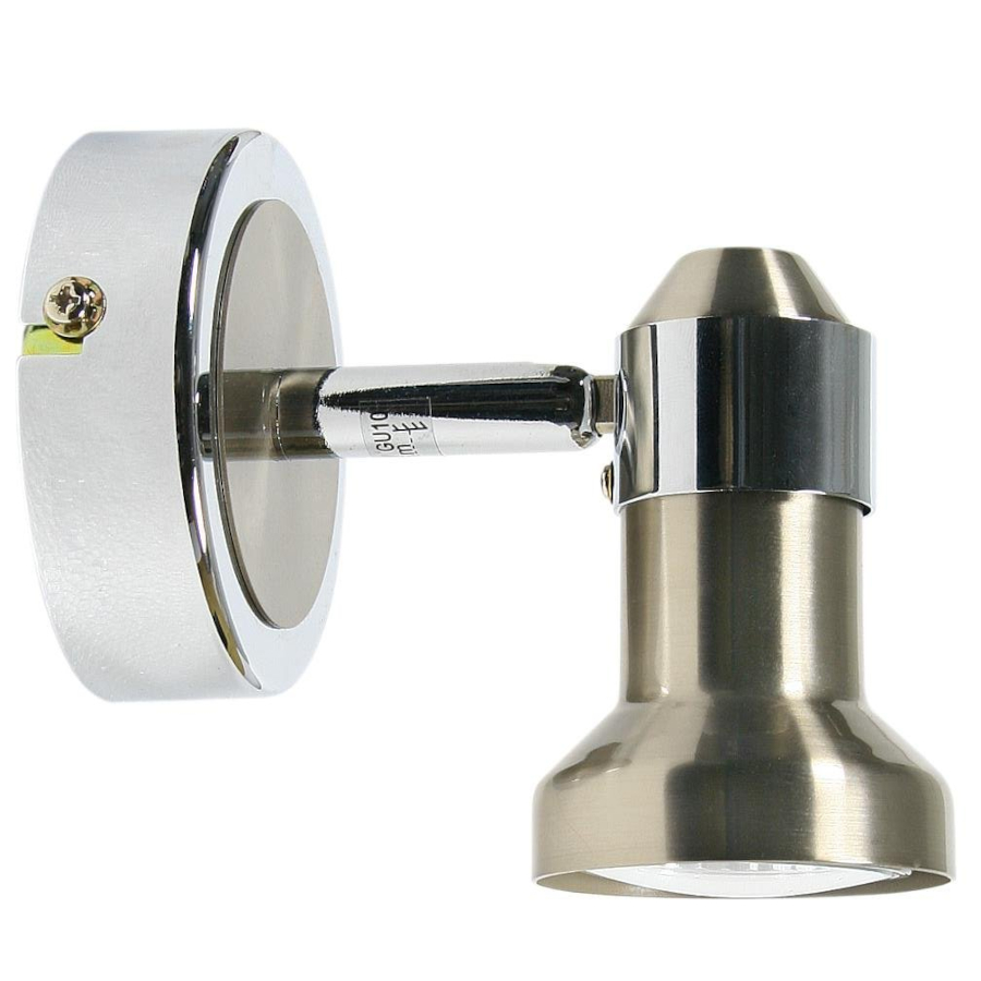 ARKON 91-59574 to nowoczesna lampa ścienna z jednym źródłem światła. Wykonana została z wysokiej jakości metalu w kolorze satynowo niklowym z chromowymi detalami. Lampa posiada klosz w kształcie reflektorka osadzony na ruchomym przegubie, który daje możliwość regulacji kąta padania światła. Kinkiet będzie idealnym wyborem do nowoczesnych wnętrz. Doskonale będzie się prezentować w: salonie, jadalni, sypialni, pokoju młodzieżowym, gabinecie, biurze, lokalu, przedpokoju, korytarzu. Wysokość lampy to: 10 cm, szerokość 8 cm, głębokość 13 cm. Źródłem światła jest żarówka typu GU10 o mocy max 50W w ilości 1 szt.