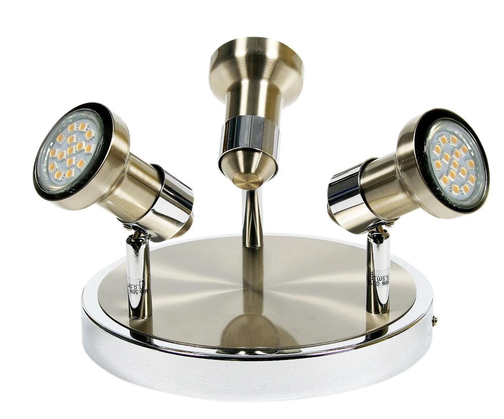 ARKON 98-60051 to nowoczesna lampa sufitowa z trzema źródłami światła. Wykonana została z wysokiej jakości metalu w kolorze satynowo niklowym z chromowymi detalami. Lampa posiada trzy klosze w kształcie reflektorków osadzone na ruchomych przegubach, które dają możliwość regulacji kąta padania światła. Oprawa będzie idealnym wyborem do nowoczesnych wnętrz. Doskonale będzie się prezentować w: salonie, jadalni, sypialni, pokoju młodzieżowym, gabinecie, biurze, lokalu, przedpokoju, korytarzu. Wysokość lampy to: 15 cm, szerokość 28 cm, głębokość 28 cm. Źródłem światła jest żarówka typu GU10 o mocy max 50W w ilości 3 szt.