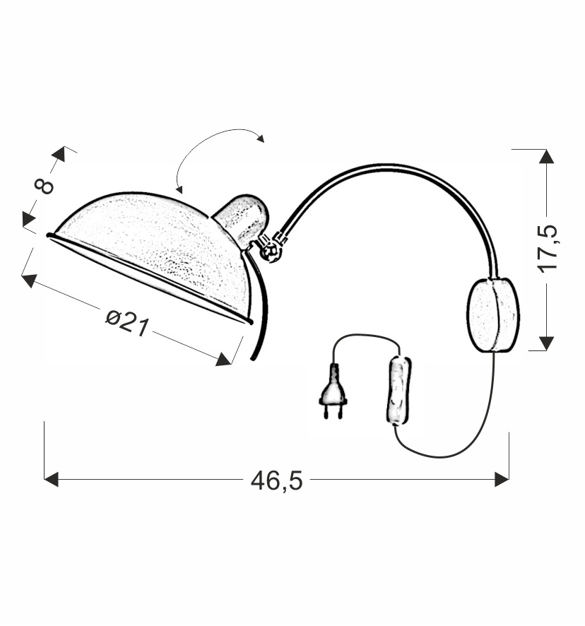 NORA 21-53602 to nowoczesna, bardzo funkcjonalna lampa ścienna z jednym źródłem światła. Lampa posiada przewód z wtyczką i wyłącznikiem, dzięki czemu może być zamontowana w miejscach gdzie nie ma możliwości podłączenia do stałej instalacji elektrycznej. Wykonana została z wysokiej jakości metalu w kolorze czarnym. Klosz lampy osadzony jest na ruchomym ramieniu, które pozwala na zmianę jego położenia w dwóch płaszczyznach. Lampa będzie idealnym wyborem do wnętrz urządzonych w nowoczesnym stylu. Doskonale będzie się prezentować w: salonie, sypialni, jadalni, pokoju młodzieżowym, gabinecie, lokalu, biurze, przedpokoju. Wysokość kinkietu to: 17,5 cm, szerokość 21 cm, głębokość 46,5 cm. Źródłem światła jest żarówka typu E14 o mocy max 40W w ilości 1 szt.