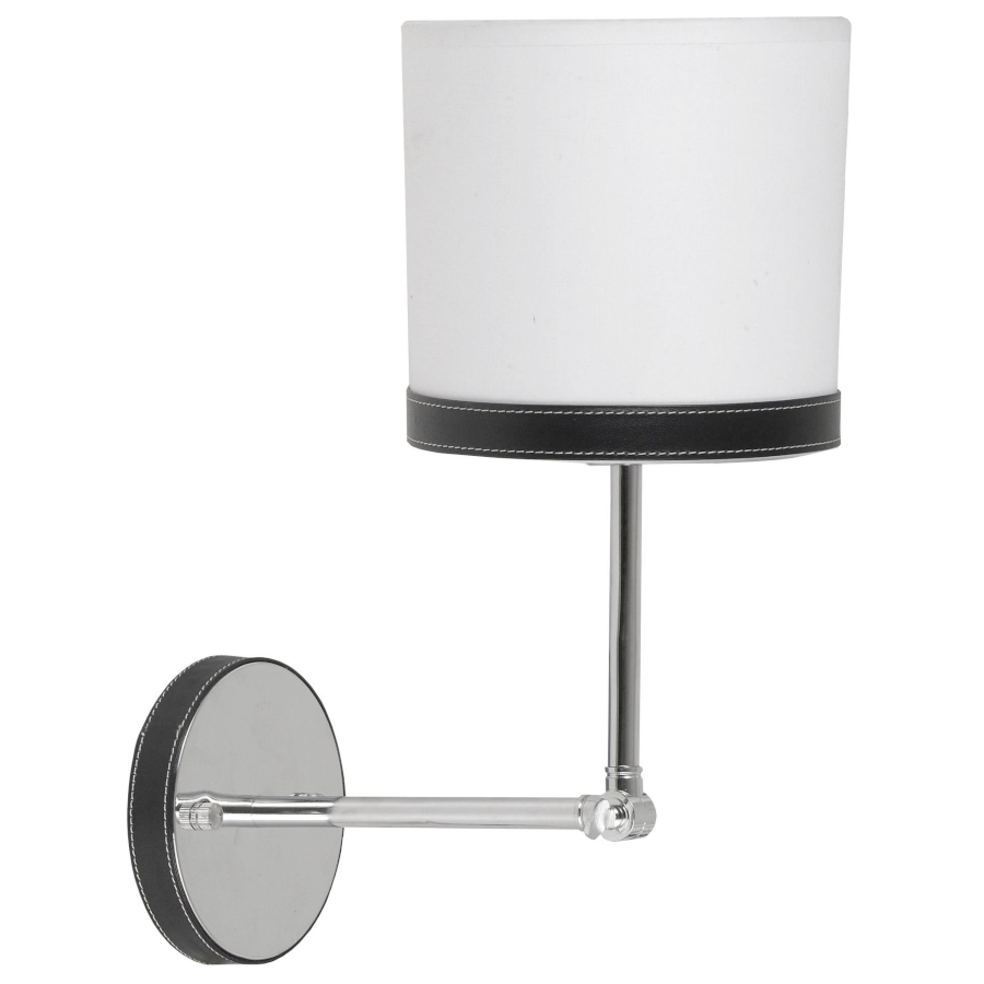 TIDA 21-31115 to nowoczesna lampa ścienna z jednym źródłem światła. Podstawę lampy wykonano z wysokiej jakości stali w kolorze chromowym. Abażur jest z białej tkaniny wzmocnionej tworzywem. Elementem wyróżniającym lampy są skórzane wstawki na podstawie i abażurze. Kinkiet posiada ruchome ramię pozwalające na przechylenie abażura w dwóch płaszczyznach. Oprawa będzie idealnym wyborem do wnętrz urządzonych w nowoczesnym stylu. Doskonale będzie się prezentować w: salonie, sypialni, jadalni, pokoju młodzieżowym, gabinecie, lokalu, biurze, przedpokoju, korytarzu. Wysokość kinkietu to: 34 cm, szerokość 16 cm, głębokość 20 cm. Źródłem światła jest żarówka typu E14 o mocy max 40W w ilości 1 szt.