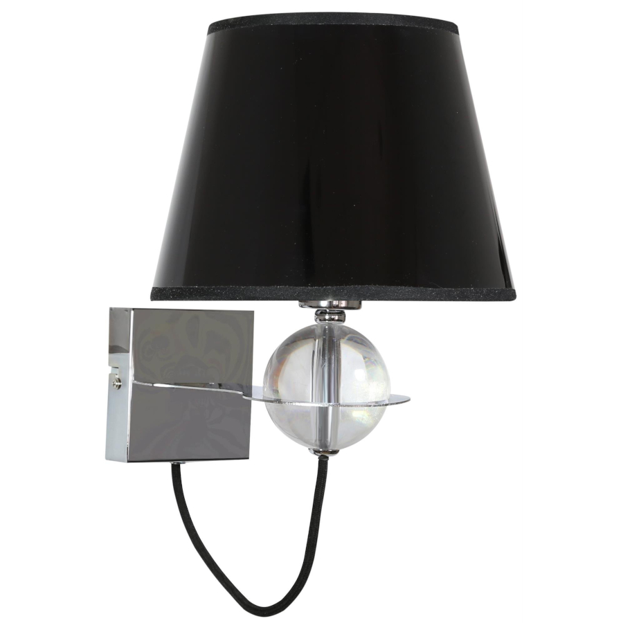 TESORO 21-29508 to nowoczesna lampa ścienna z jednym źródłem światła. Podstawę lampy wykonano z wysokiej jakości stali w kolorze chromowym z ozdobną transparentną szklaną kulą. Abażur jest z tkaniny wzmocnionej od wewnątrz PCV w kolorze czarnym na zewnątrz, złotym od środka. Lampa będzie idealnym wyborem do wnętrz urządzonych w nowoczesnym stylu. Doskonale będzie się prezentować w: salonie, sypialni, jadalni, pokoju młodzieżowym, gabinecie, lokalu, biurze, przedpokoju, korytarzu. Wysokość kinkietu to: 33 cm, szerokość 22 cm, głębokość 27 cm. Źródłem światła jest żarówka typu E14 o mocy max 40W w ilości 1 szt.