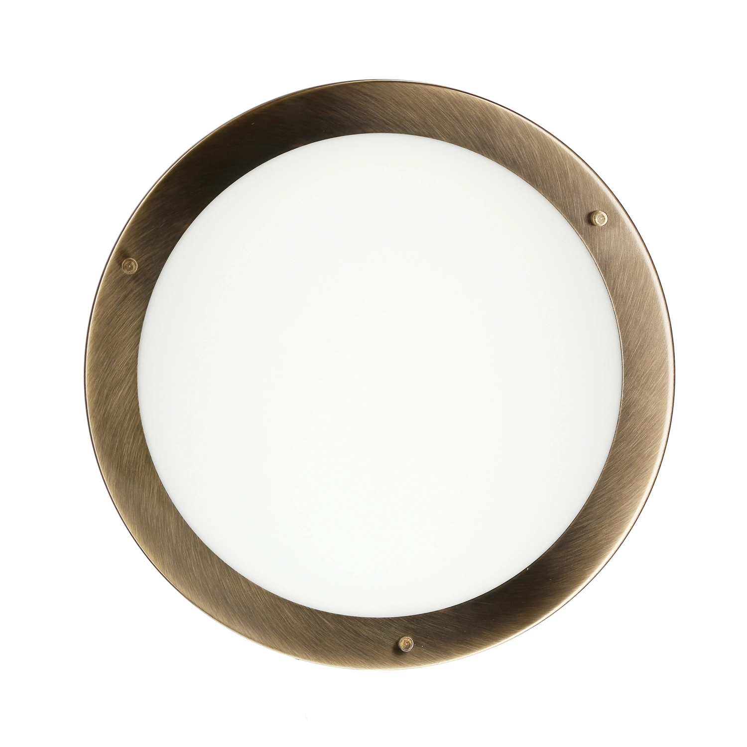 AQUILA 13-89345 to lampa sufitowa z jednym źródłem światła, która doskonale będzie się prezentować w każdym pomieszczeniu także łazience dzięki normie IP44. Lampa ma klasyczny okrągły kształt, wykonana została z wysokiej jakości metalu w kolorze patynowym i białego szkła. Plafon ma wysokość 9 cm i średnicę 32 cm. Źródłem światła jest żarówka typu E27 o mocy max 60W w ilości 1 szt.