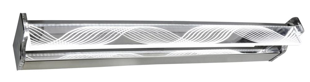 stylowa kombinacja chromu z transparentnym akrylem; wewnątrz akrylowego klosza dekoracyjne spiralne zdobienia, szczególnie wyraziste po zaświeceniu oprawy, imponująco odbijąjące się w lustrzanej powierzchni chromowej podstawy; brak możliwości regulacji kąta padania światła; idealna propozycja nad lustro