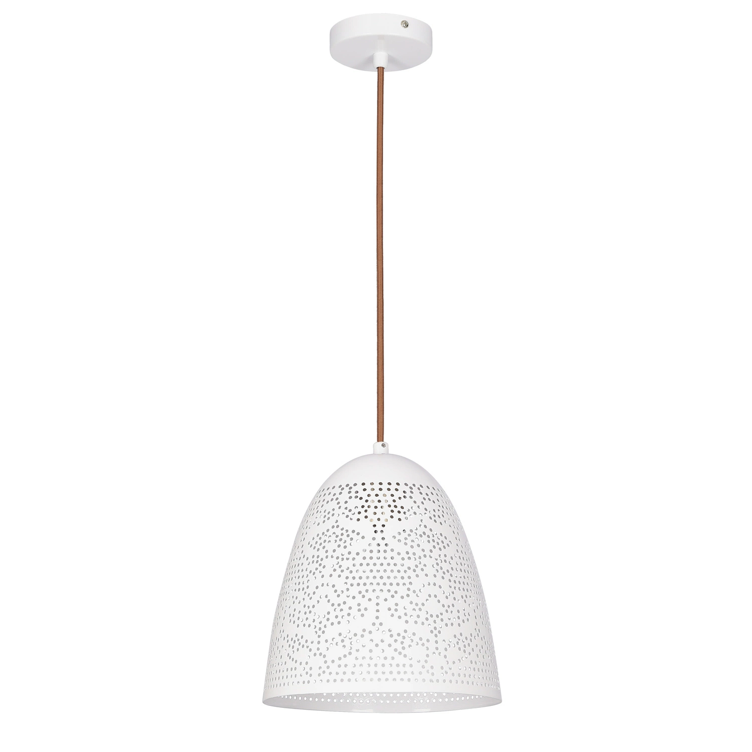 BENE 31-70340 to nowoczesna lampa wisząca z jednym źródłem światła. Wykonana została z wysokiej jakości metalu w kolorze białym. Elementem wyróżniającym lampy jest ażurowy klosz. Lampa będzie idealnym wyborem do wnętrz urządzonych w nowoczesnym oraz industrialnym stylu. Doskonale będzie się prezentować w: salonie, jadalni, sypialni, pokoju młodzieżowym, biurze, gabinecie, lokalu, kuchni. Dużą zaletą jest możliwość regulacji wysokości. Wysokość maksymalna lampy to: 125 cm, szerokość 20 cm, głębokość 20 cm. Źródłem światła jest żarówka typu E27 o mocy max 60W w ilości 1 szt.