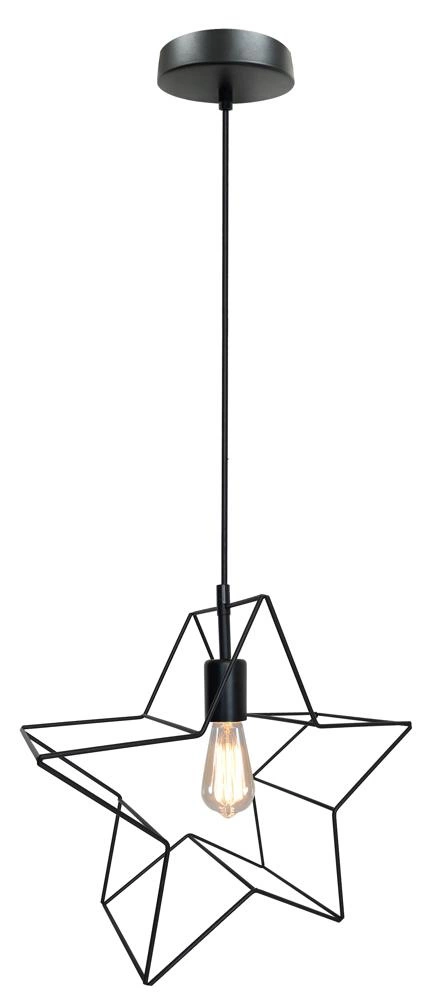 GWIAZDKA 31-64080 to nowoczesna lampa wisząca z jednym źródłem światła. Wykonana została z wysokiej jakości metalu w kolorze czarnym. Elementem wyróżniającym lampy jest druciany klosz w kształcie gwiazdy. Kształt klosza sprawia, że odsłonięta żarówka może być elementem ozdobnym dlatego warto wybrać jej dekoracyjny model. Lampa będzie idealnym wyborem do wnętrz urządzonych w stylu nowoczesnym oraz industrialnym. Doskonale będzie się prezentować w: salonie, jadalni, sypialni, pokoju młodzieżowym, biurze, gabinecie, lokalu, pokoju dziecięcym. Dużą zaletą jest możliwość regulacji wysokości. Wysokość maksymalna lampy to: 120 cm, szerokość 37 cm, głębokość 15 cm. Źródłem światła jest żarówka typu E27 o mocy max 60W w ilości 1 szt.