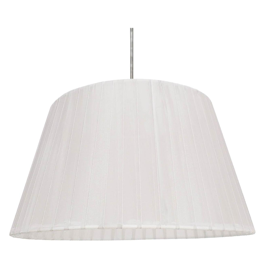 TIZIANO 31-27146 to nowoczesna lampa wisząca z jednym źródłem światła. Lampa składa się z stożkowego abażura z organzy w kolorze białym zwisającego z satynowej podsufitki na transparentnej lince. Oprawa będzie idealnym wyborem do wnętrz urządzonych nowoczesnym stylu. Doskonale wkomponuje się do: salonu, jadalni, sypialni, pokoju młodzieżowego, gabinetu, lokalu, kuchni. Dużą zaletą jest możliwość regulacji wysokości. Wysokość maksymalna lamy to: 105 cm, szerokość 37 cm, głębokość 37 cm. Źródłem światła jest żarówka typu E27 o mocy max 60W w ilości 1 szt.