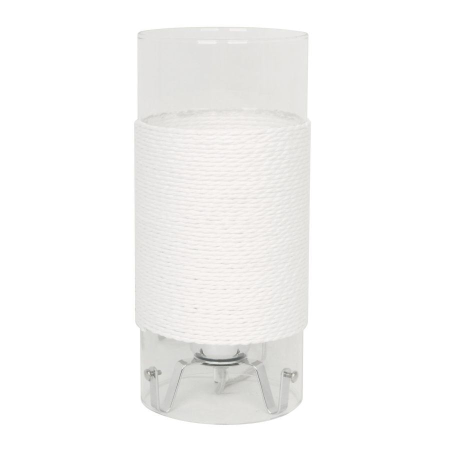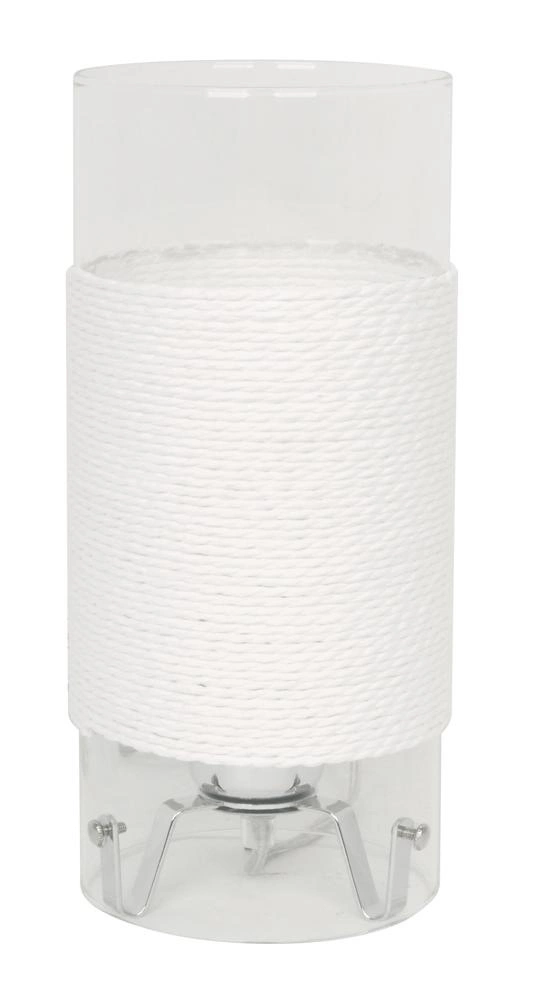 WRING 41-28006 to nowoczesna lampa stołowa z jednym źródłem światła. Lampa ma kształt walca, wykonana jest z transparentnego szkła owiniętego białym sznurkiem. Podstawa jest z stali w kolorze chromowym. Oprawa będzie idealnym wyborem do wnętrz urządzonych w stylu klasycznym oraz nowoczesnym. Doskonale będzie się prezentować w: salonie, jadalni, sypialni, pokoju młodzieżowym, gabinecie, biurze. Wysokość lampy to: 27 cm, szerokość 12 cm, głębokość 12 cm. Źródłem światła jest żarówka typu E27 o mocy max 60W w ilości 1 szt.