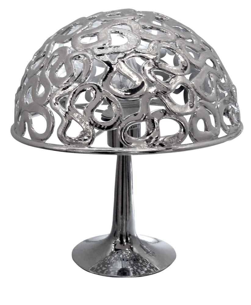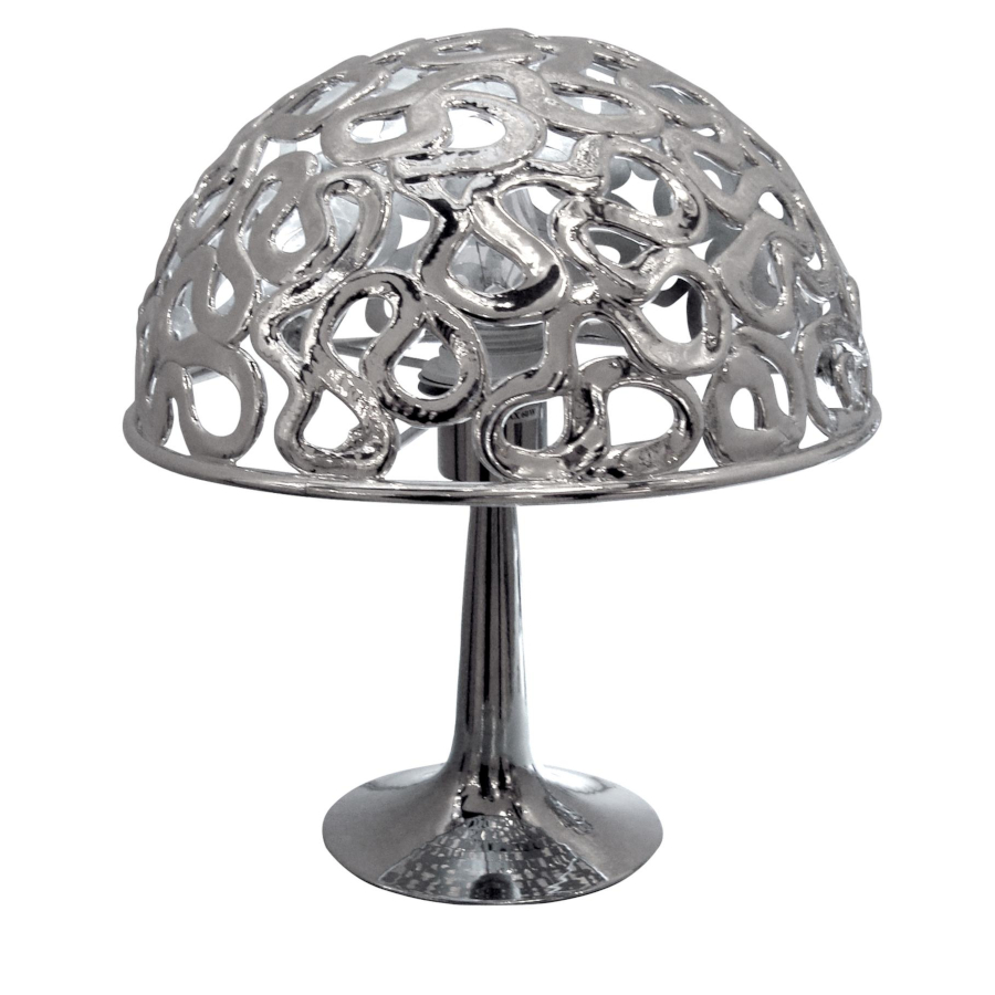 LAME 41-40056 to designerska lampa stołowa z jednym źródłem światła. Lampa ma kształt grzybka, podstawa jest wykonana ze stali, klosz jest plastikowy. Całość jest w kolorze chromowym. Lampa będzie idealnym wyborem do wnętrz urządzonych w nowoczesnym stylu. Doskonale będzie się prezentować w: salonie, sypialni, jadalni, pokoju młodzieżowym, gabinecie, lokalu, biurze. Wysokość lampy to: 45 cm, szerokość 25 cm, głębokość 25 cm. Źródłem światła jest żarówka typu E27 o mocy max 60W w ilości 1 szt.