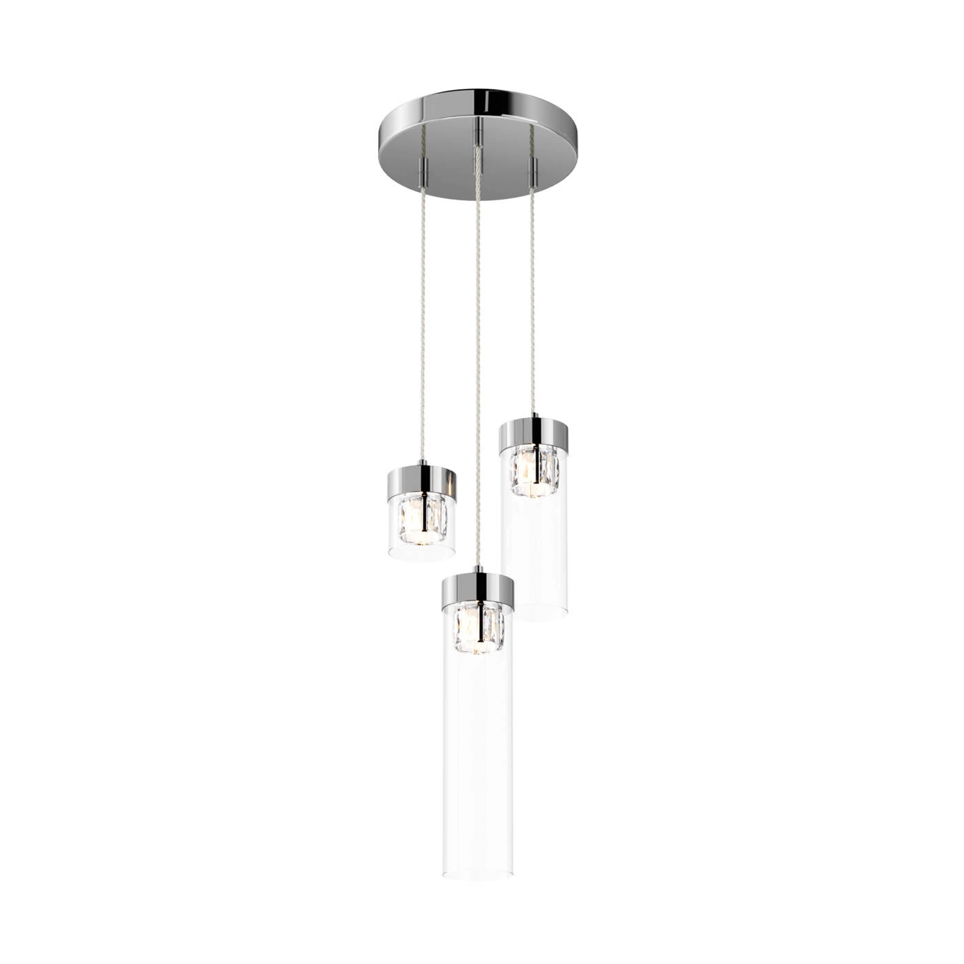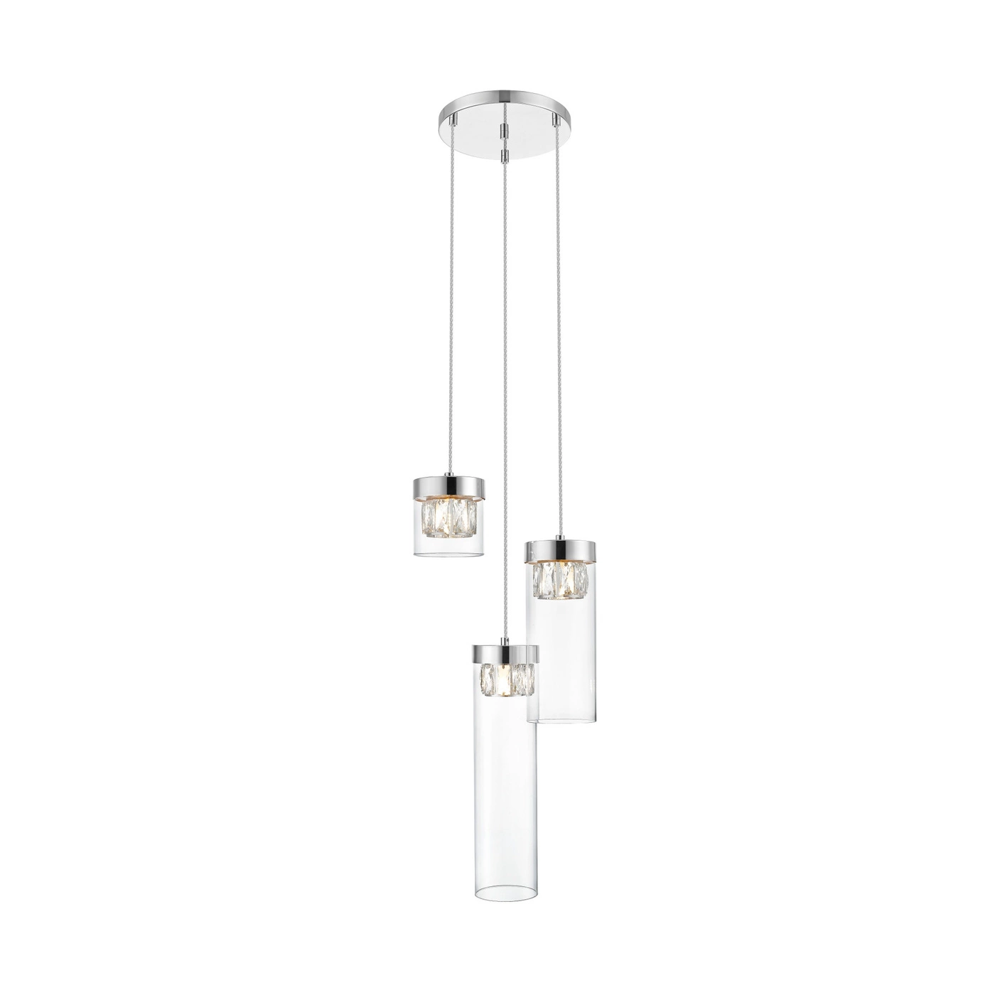 Trzy punkty świetlne. Wąskie cylindryczne klosze które skrywają kryształki osłaniające źródło światła.
