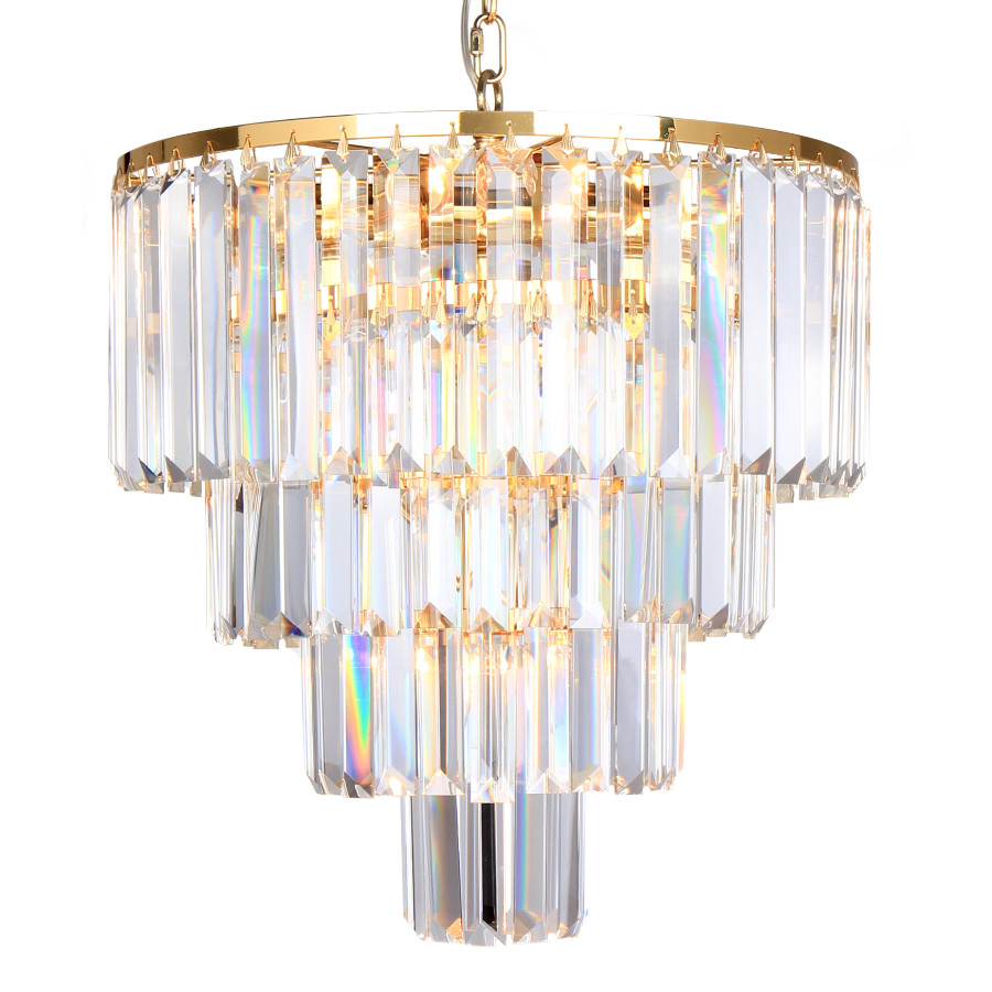Lampa wykonana z metalu pokrytego złotą farbą oraz szklanych kryształków.