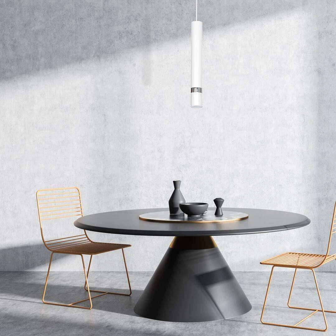 JOKER MLP1347 to stylowa lampa wisząca z jednym źródłem światła. Wykonana została z wysokiej jakości metalu w kolorze białym z chromową wstawką. Oprawa będzie idealnym wyborem do wnętrz urządzonych w stylu klasycznym, nowoczesnym oraz minimalistycznym. Doskonale będzie się prezentować w: salonie, jadalni, sypialni, pokoju młodzieżowym, gabinecie, biurze, lokalu, przedpokoju, kuchni. Dużym atutem jest możliwość regulacji wysokości. Wysokość maksymalna lampy to: 90 cm, szerokość 8 cm, głębokość 8 cm. Źródłem światła jest żarówka GU10 typu LED o mocy max 8W w ilości 1 szt.
