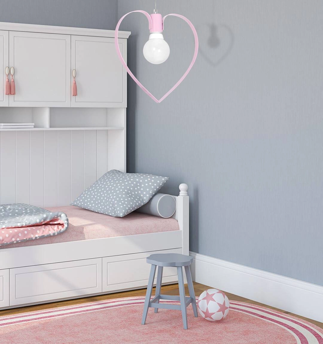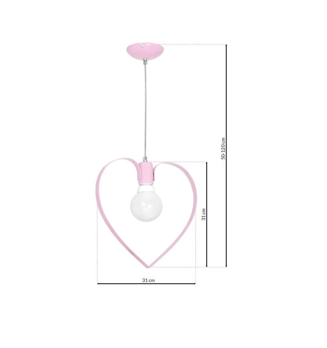 AMORE MLP9953 to nowoczesna lampa wisząca z jednym źródłem światła. Wykonana została z wysokiej jakości metalu w kolorze różowym. Elementem wyróżniającym lampy jest metalowe serce otaczające żarówkę. Lampa idealnie sprawdzi się we wnętrzach urządzonych w stylu klasycznym oraz nowoczesnym. Doskonale będzie się prezentować przede wszystkim w pokoju dziecięcym oraz w jadalni, salonie, sypialni. Dużą zaletą jest możliwość regulacji wysokości. Wysokość maksymalna lampy to: 120 cm, szerokość 31 cm, głębokość 10 cm. Źródłem światła jest żarówka typu E27 o mocy max 60W w ilości 1 szt.