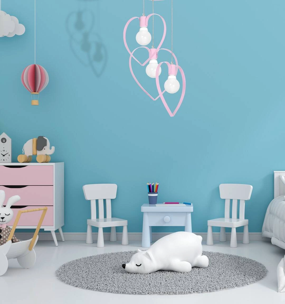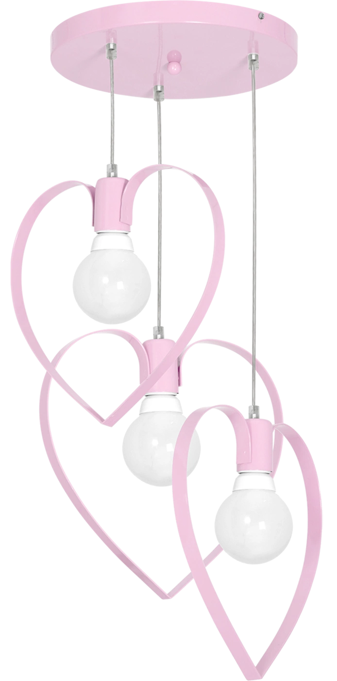 AMORE MLP9954 to nowoczesna lampa wisząca z trzema źródłami światła. Wykonana została z wysokiej jakości metalu w kolorze różowym. Elementami wyróżniającymi lampy są metalowe serca otaczające żarówki. Lampa idealnie sprawdzi się we wnętrzach urządzonych w stylu klasycznym oraz nowoczesnym. Doskonale będzie się prezentować przede wszystkim w pokoju dziecięcym oraz w jadalni, salonie, sypialni. Dużą zaletą jest możliwość regulacji wysokości. Wysokość maksymalna lampy to: 120 cm, szerokość 40 cm, głębokość 40 cm. Źródłem światła jest żarówka typu E27 o mocy max 60W w ilości 3 szt.