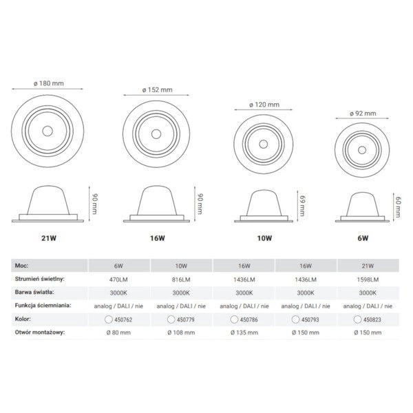 Oprawa z wbudowanym źródłem światła LED o mocy 6W