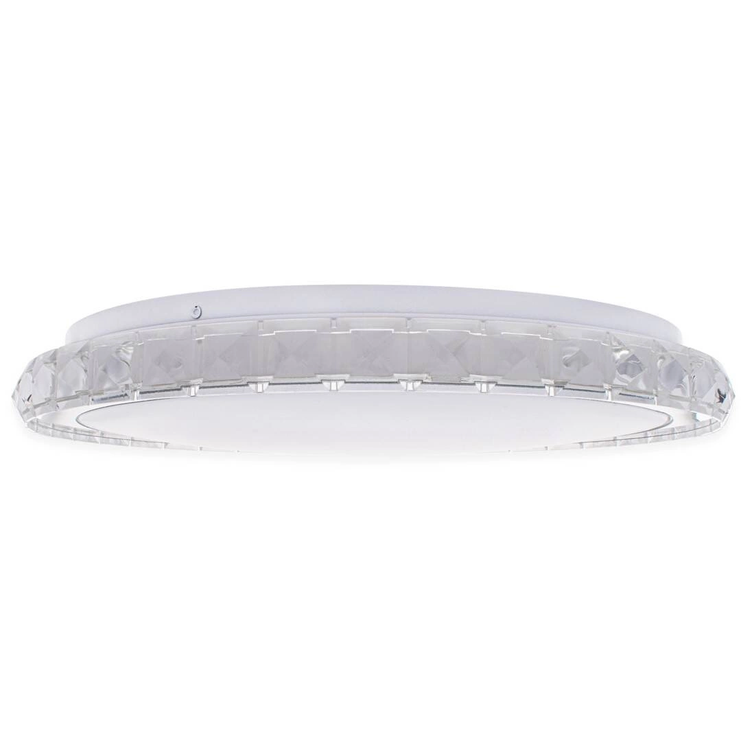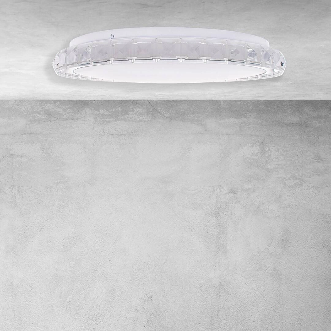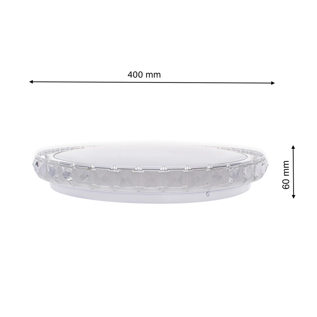 LAYLA ML4221 to nowoczesna lampa sufitowa z jednym źródłem światła. Wykonana została z wysokiej jakości metalu, tworzywa sztucznego i kryształu. Lampa ma kształt klasycznego spodku w kolorze białym z chromowym detalem. Dodatkowo klosz wykończony jest kryształową obwódką, która sprawia że po zapaleniu rozbłyskujące światło tworzy efekt gwiezdnego nieba. Natężenie światła regulowane jest za pomocą pilota, którym można również zmieniać barwę światła pomiędzy 3000K, 4000K, 6000K. Plafon będzie idealnym wyborem do nowoczesnych: salonów oraz sypialni. Lampa ma wysokość 6 cm i średnicę 40 cm. W lampie zastosowano wymienny moduł LED o mocy 26W, zmiennej barwie światła 3000K-6000K i jasności 1560lm.