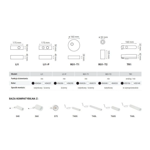 Całość dopełniają różne reflektorki oraz lampy wiszące, które dowolnie wybieramy do dowolnej bazy.