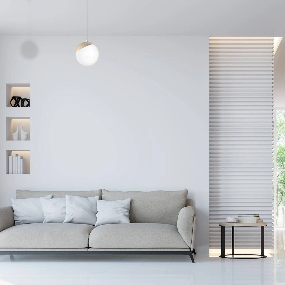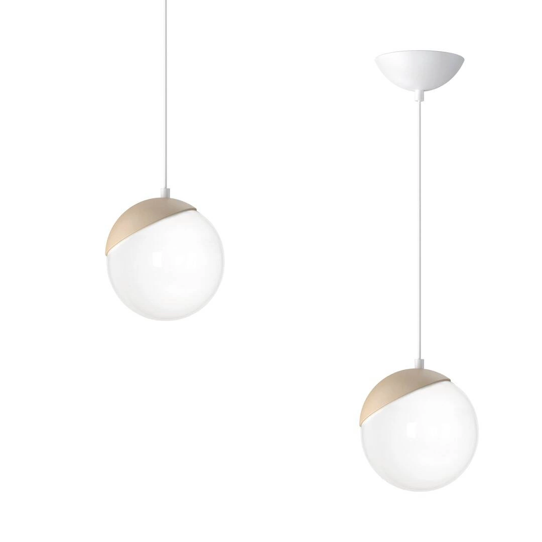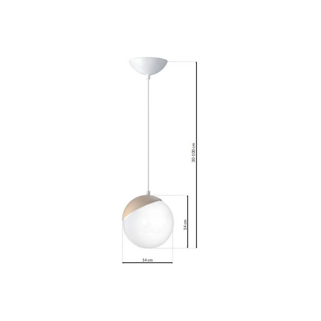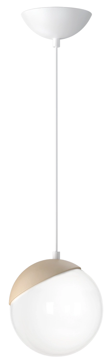 Lampa wisząca nowoczesna szklana kula SFERA WOOD drewno/biały śr. 14cm