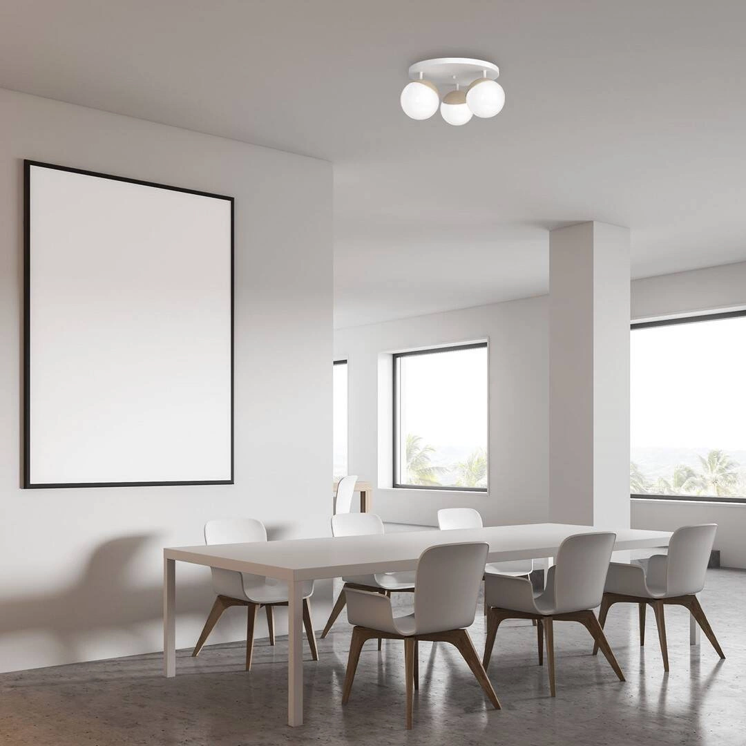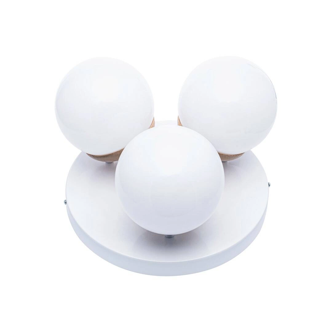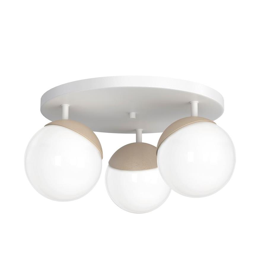 Lampa sufitowa nowoczesna szklana kula plafon SFERA WOOD III drewno/biały śr. 35cm