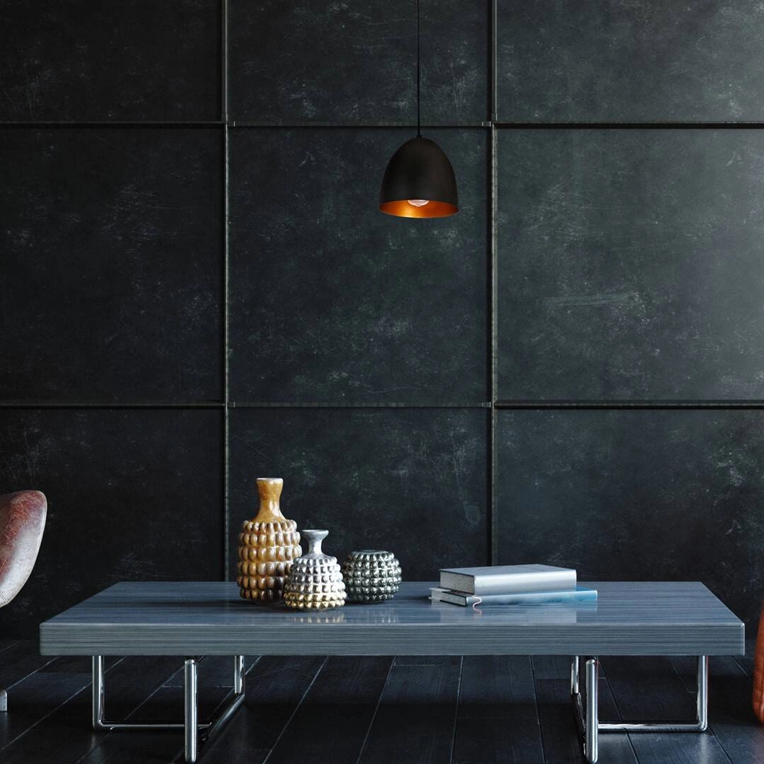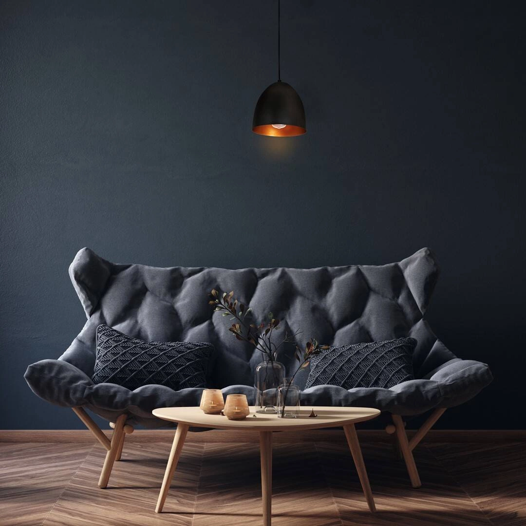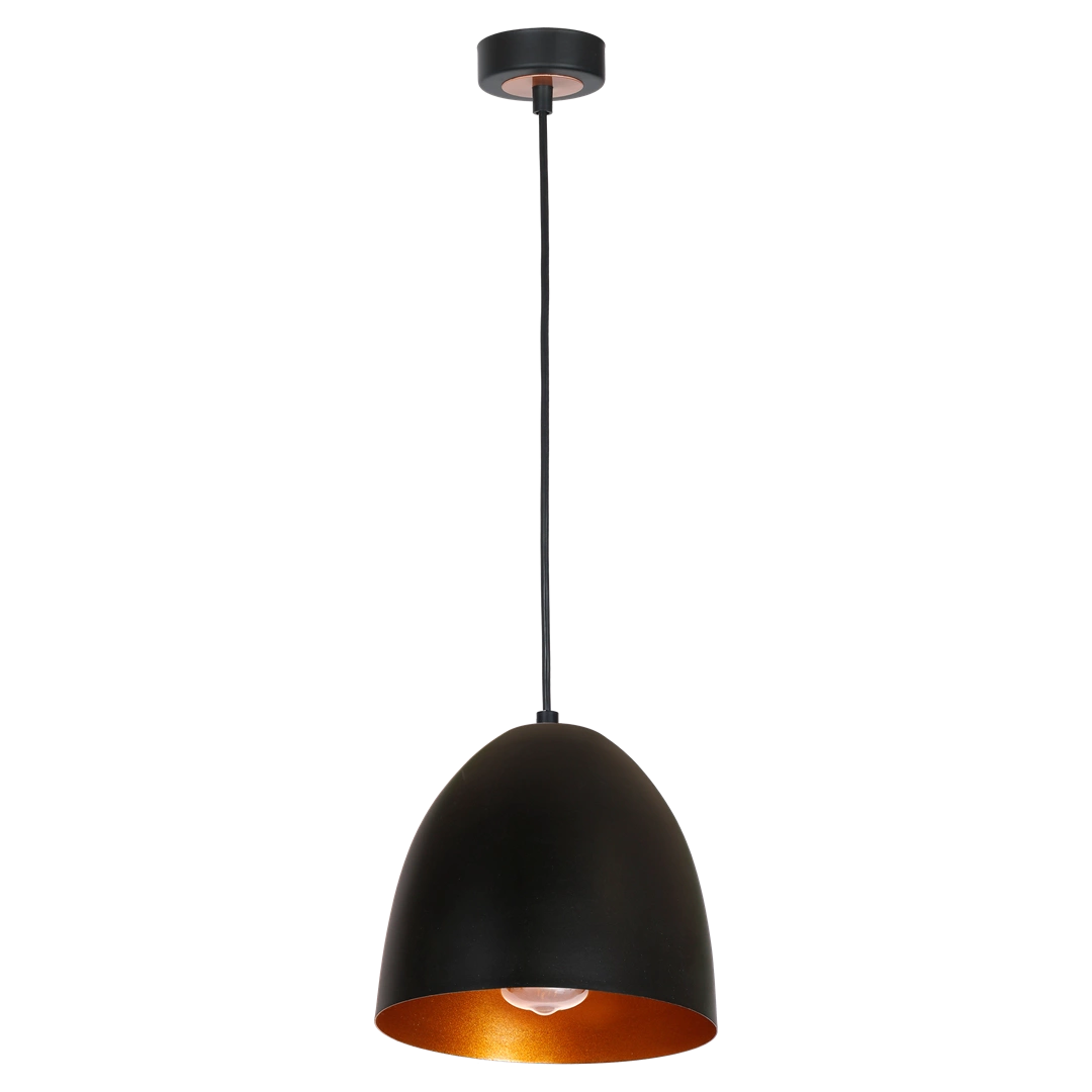 VEGAS MLP5587 to nowoczesna lampa wisząca z jednym źródłem światła. Wykonana została z wysokiej jakości metalu w kolorze czarnym. Klosz lampy ma tradycyjny owalny kształt, jest koloru czarnego z zewnątrz, od środka jest w kolorze miedzianym. Lampa będzie doskonałym wyborem do wnętrz urządzonych w stylu nowoczesnym oraz loftowym. Idealnie wkomponuje się do: salonu, sypialni, kuchni, jadalni, pokoju młodzieżowego, gabinetu, lokalu. Dodatkowym atutem jest możliwość regulacji wysokości. Wysokość maksymalna lampy to: 90 cm, szerokość 18 cm, głębokość 18 cm. Źródłem światła jest żarówka typu E27 o mocy max 60W w ilości 1 szt.